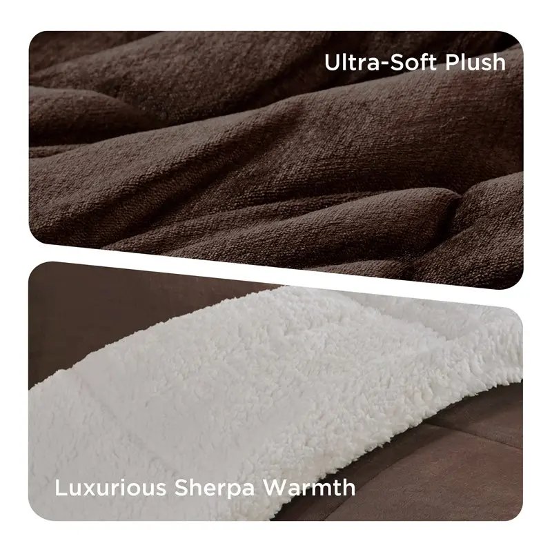 ·The set includes a plush to sherpa comforter, ensuring softness and warmth. It is hypoallergenic, making it safe for sensitive skin. 🌿