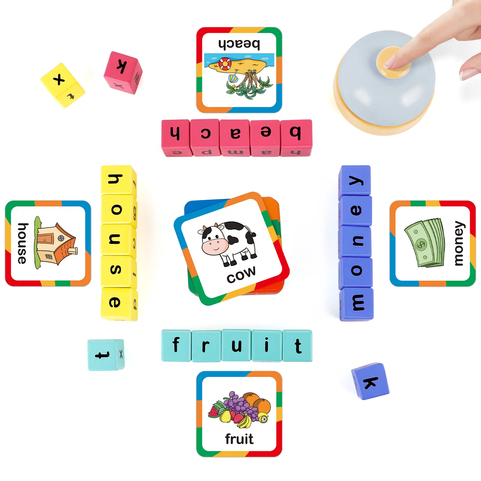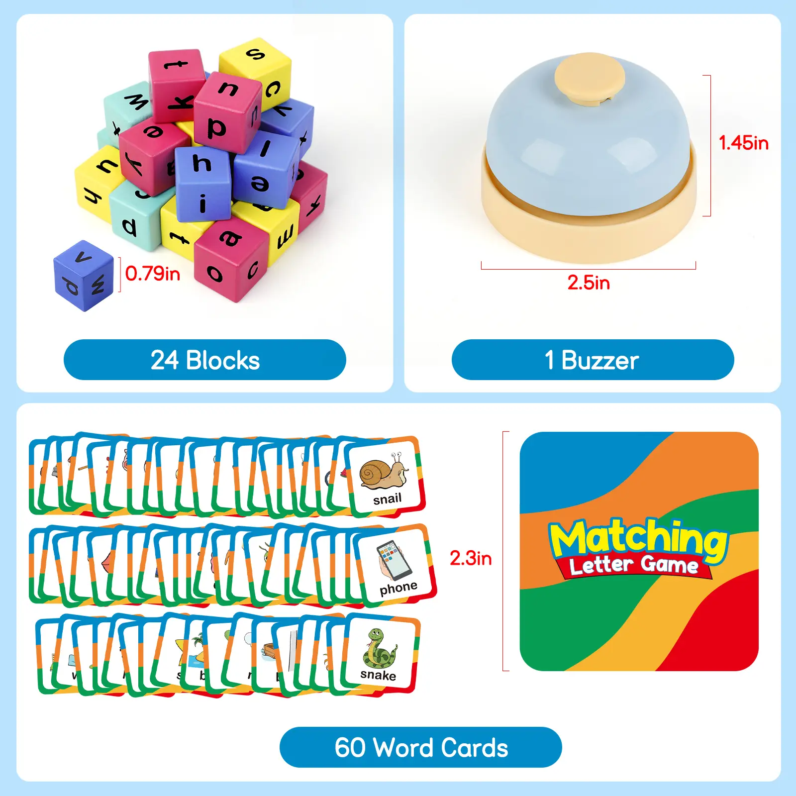 Comprehensive Learning Set: This word race cube game includes 24 wooden blocks, 60 word flash cards, and 1 buzzer, designed to make learning words fun and engaging for learners. It transforms the traditional learning process into an exciting game, helping learners enjoy spelling games and word games.