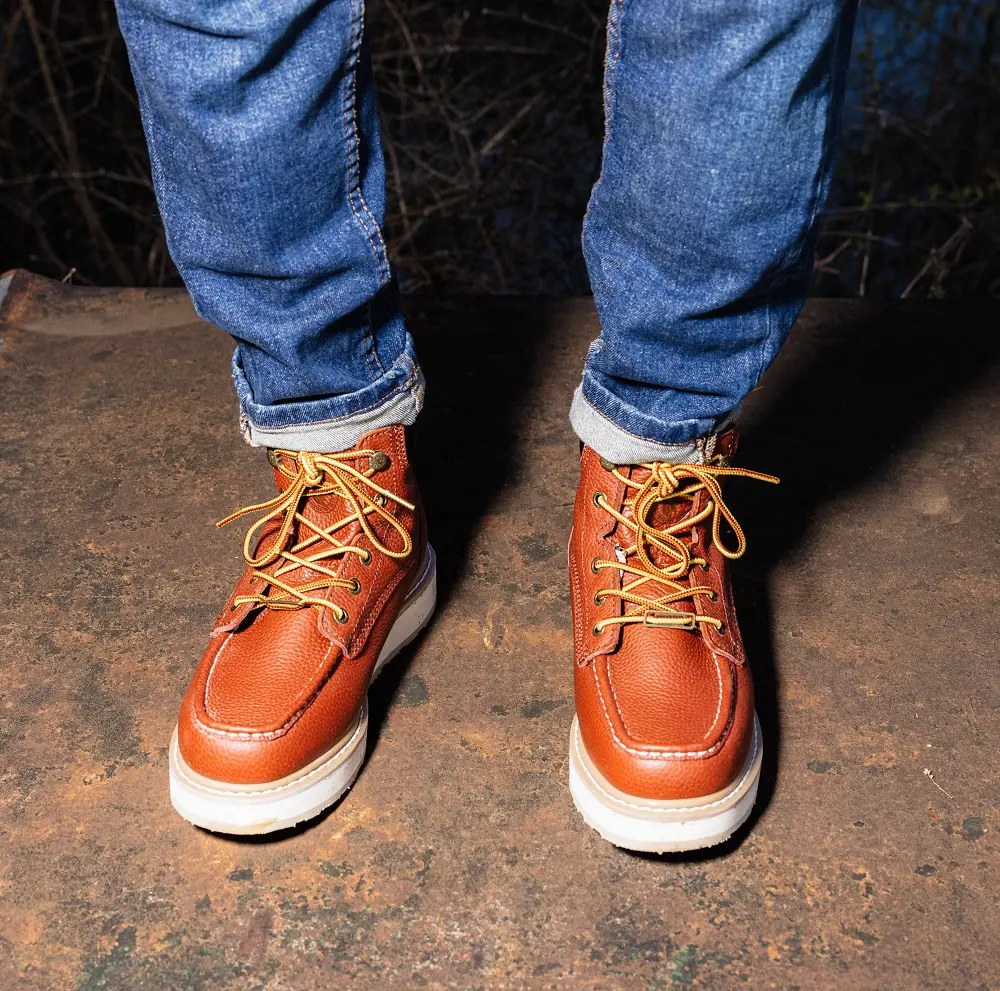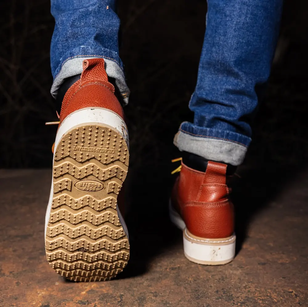 Elevate your workwear with the ROCKROOSTER Work Boots. These boots feature a soft toe design and a wedge sole for enhanced comfort. They are water, oil, and chemical resistant, meeting ASTM 2892 standards. Ideal for roofing tasks, these boots ensure safety and durability.