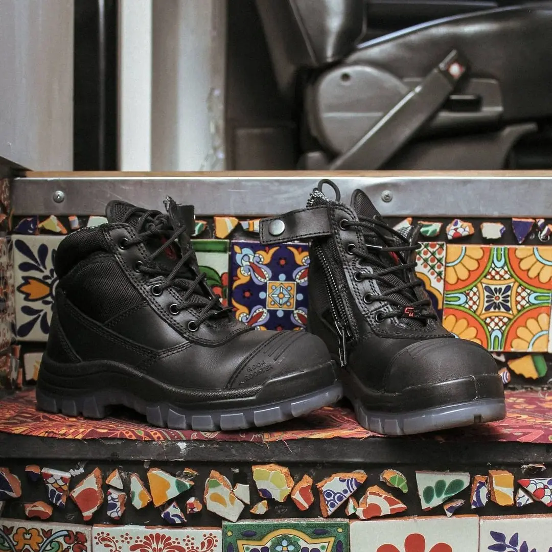 ROCKROOSTER Men's Work Boots, Steel Toe, Antistatic, Safety Leather Shoes, Side Zipper, ASTM 2413 I/75 C/75 SD