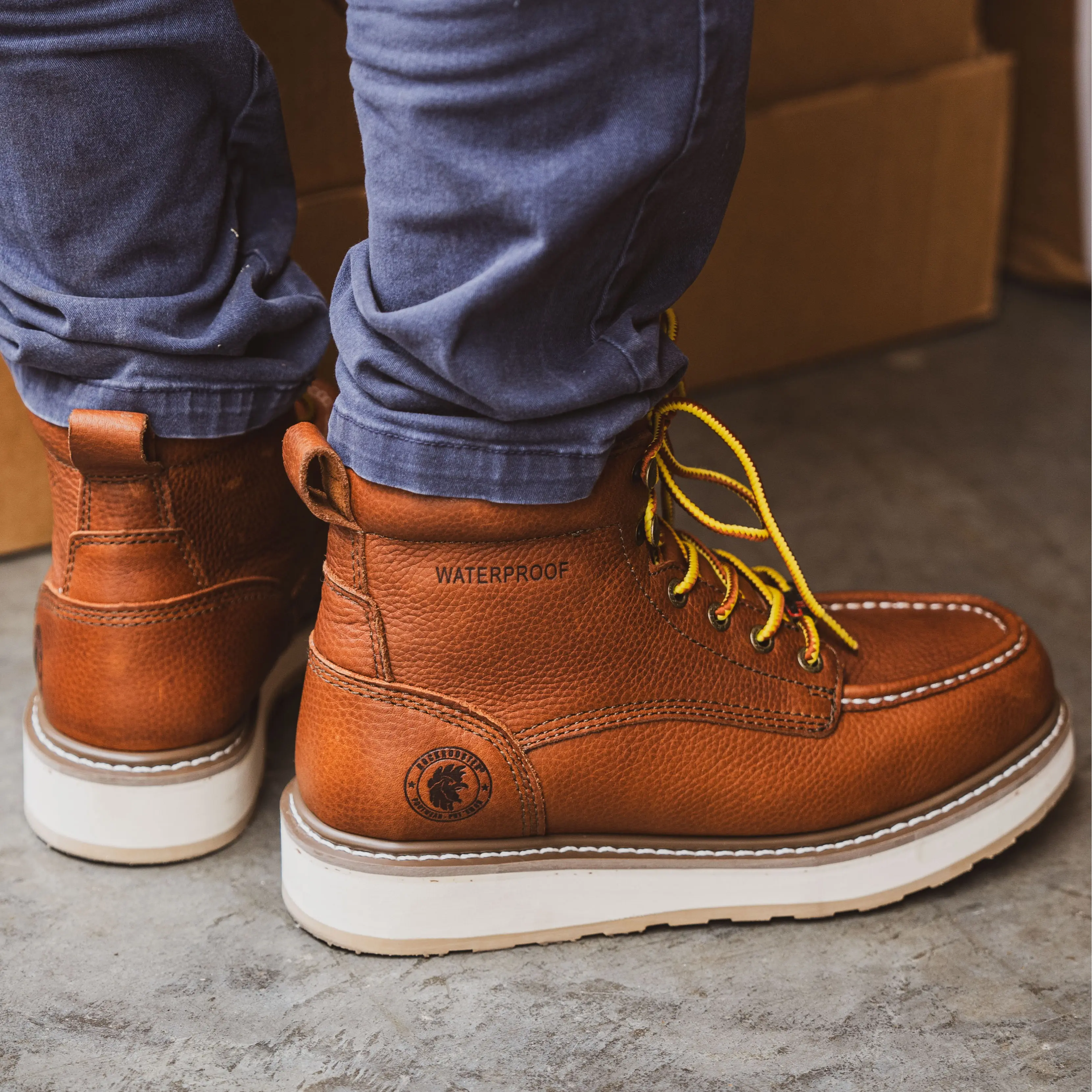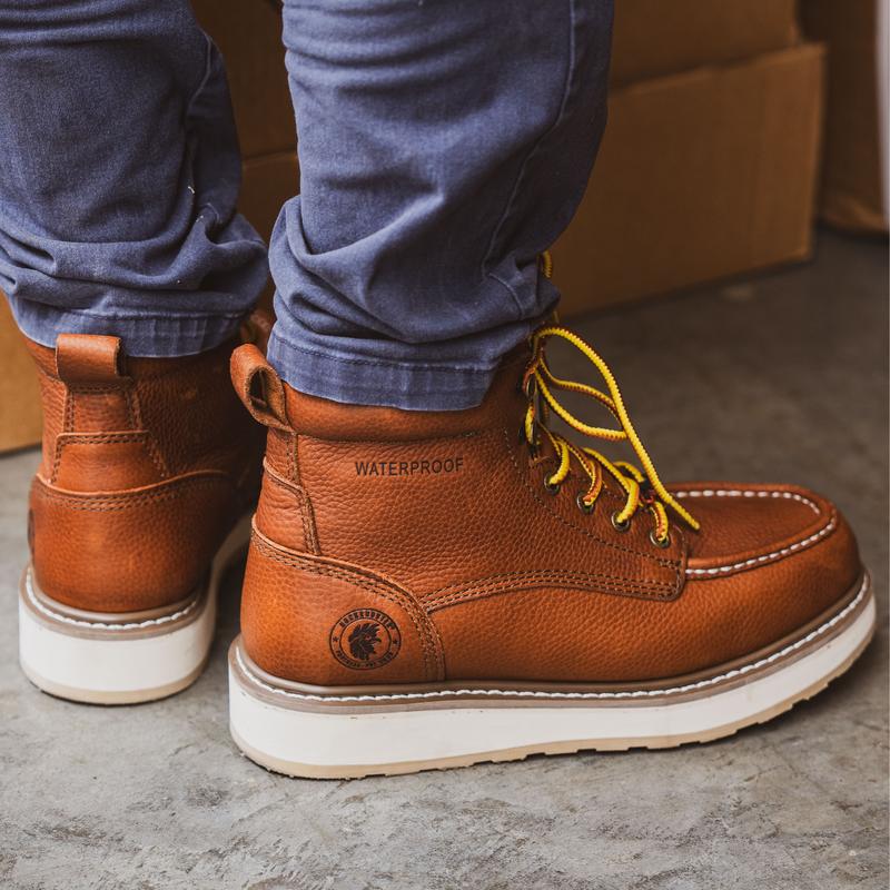 ROCKROOSTER Work Boots, Soft toe, Wedge sole, Breathable Waterproof Membrane, Oil Resistant, Chemical Resistant, Slip Resistant, Light Weight, ASTM F2892