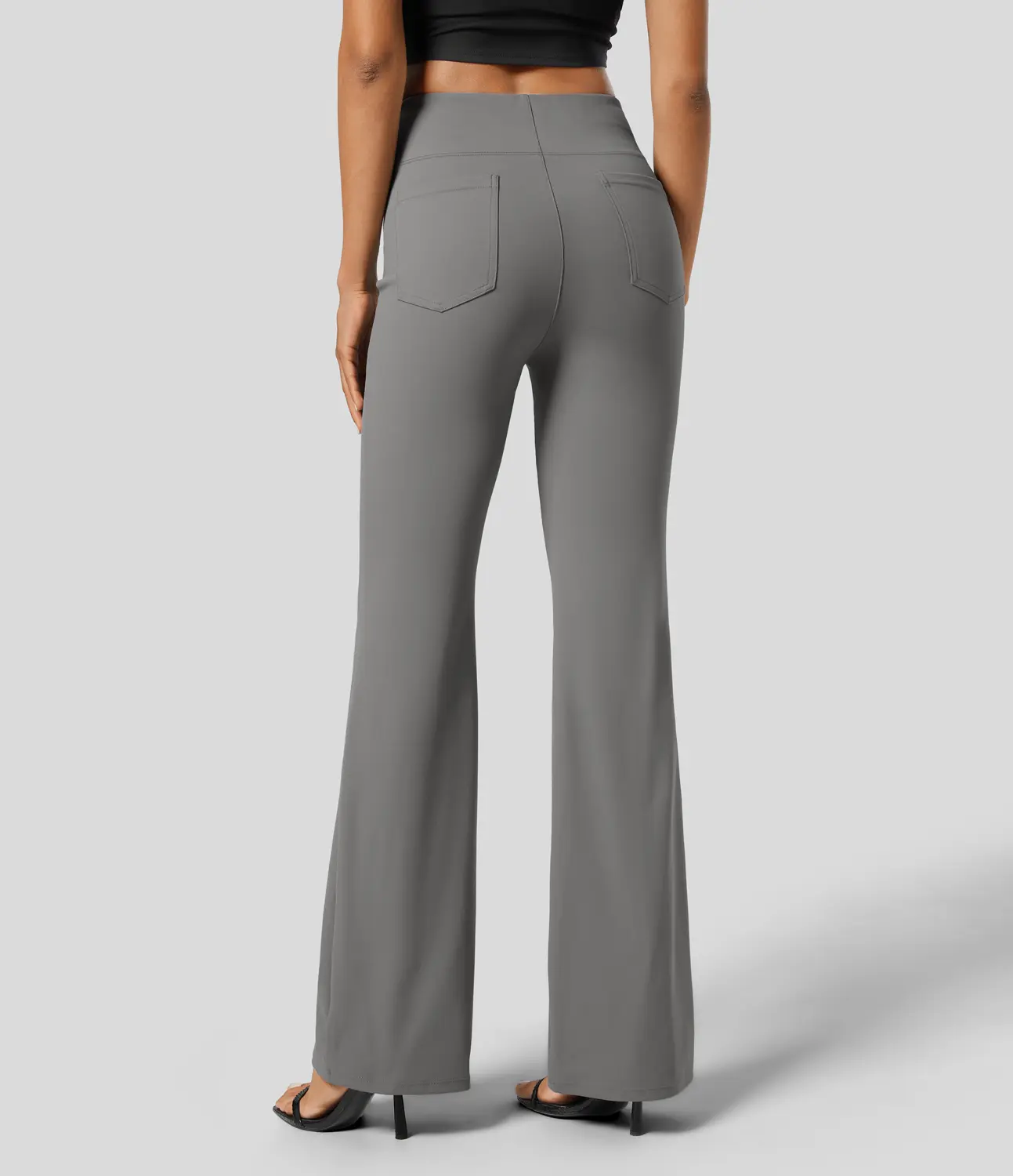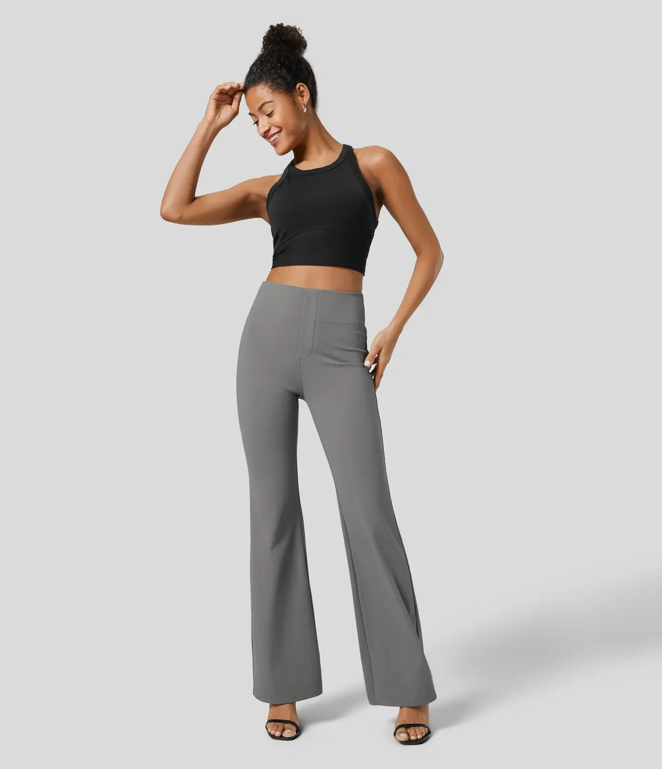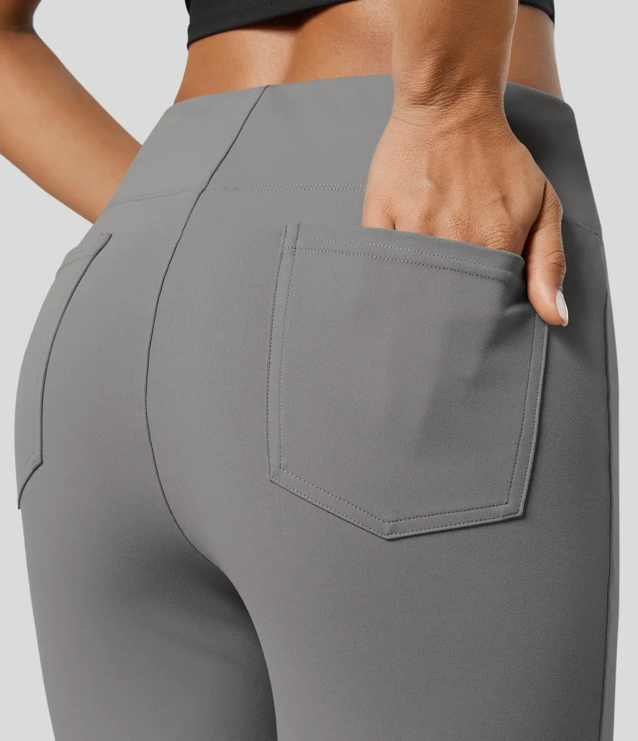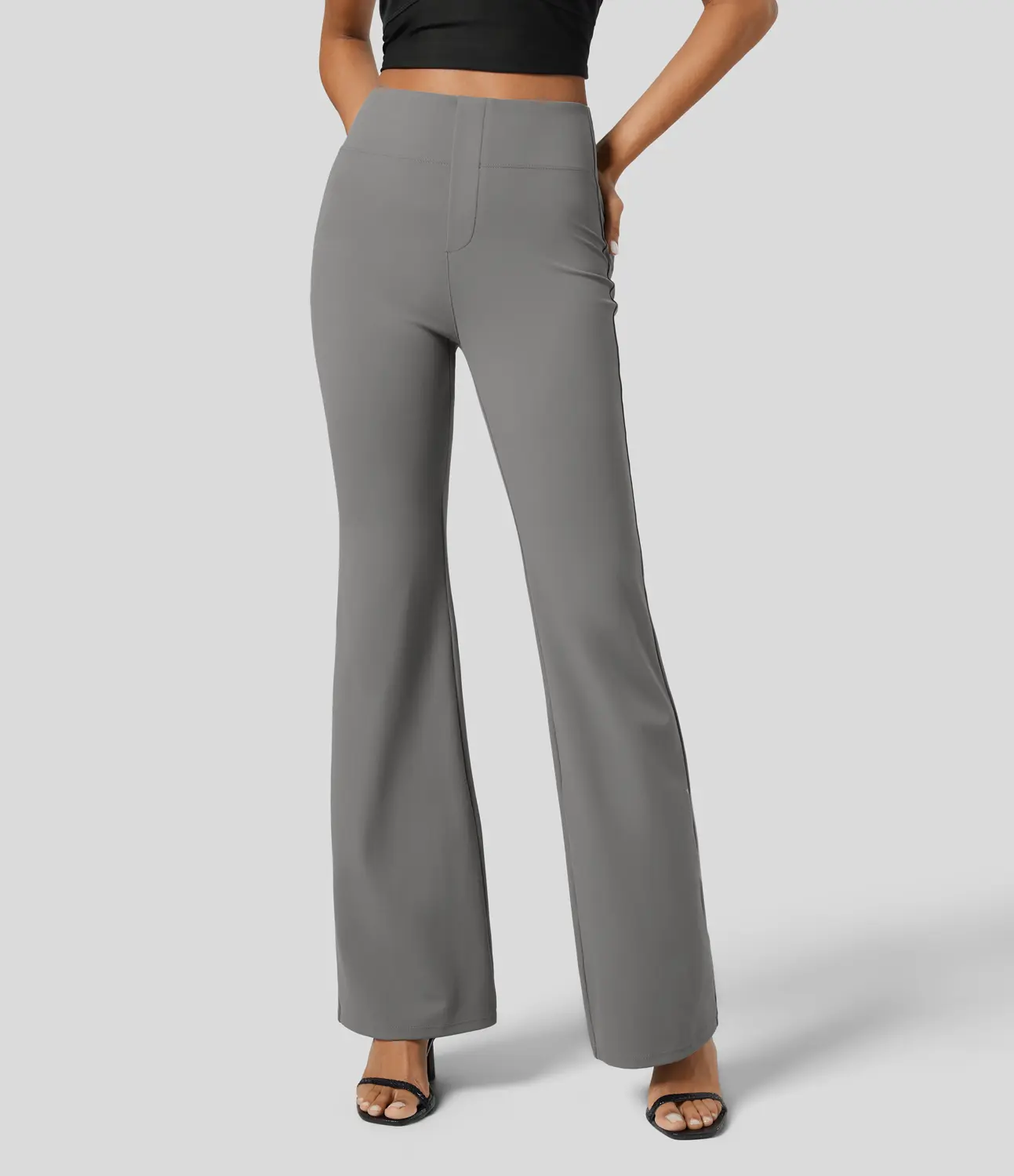 These work pants are so flexible that you feel like you wore you're leggings to work. They are high waisted and have flared legs. True to size. Various lengths available. 20 amazing colors