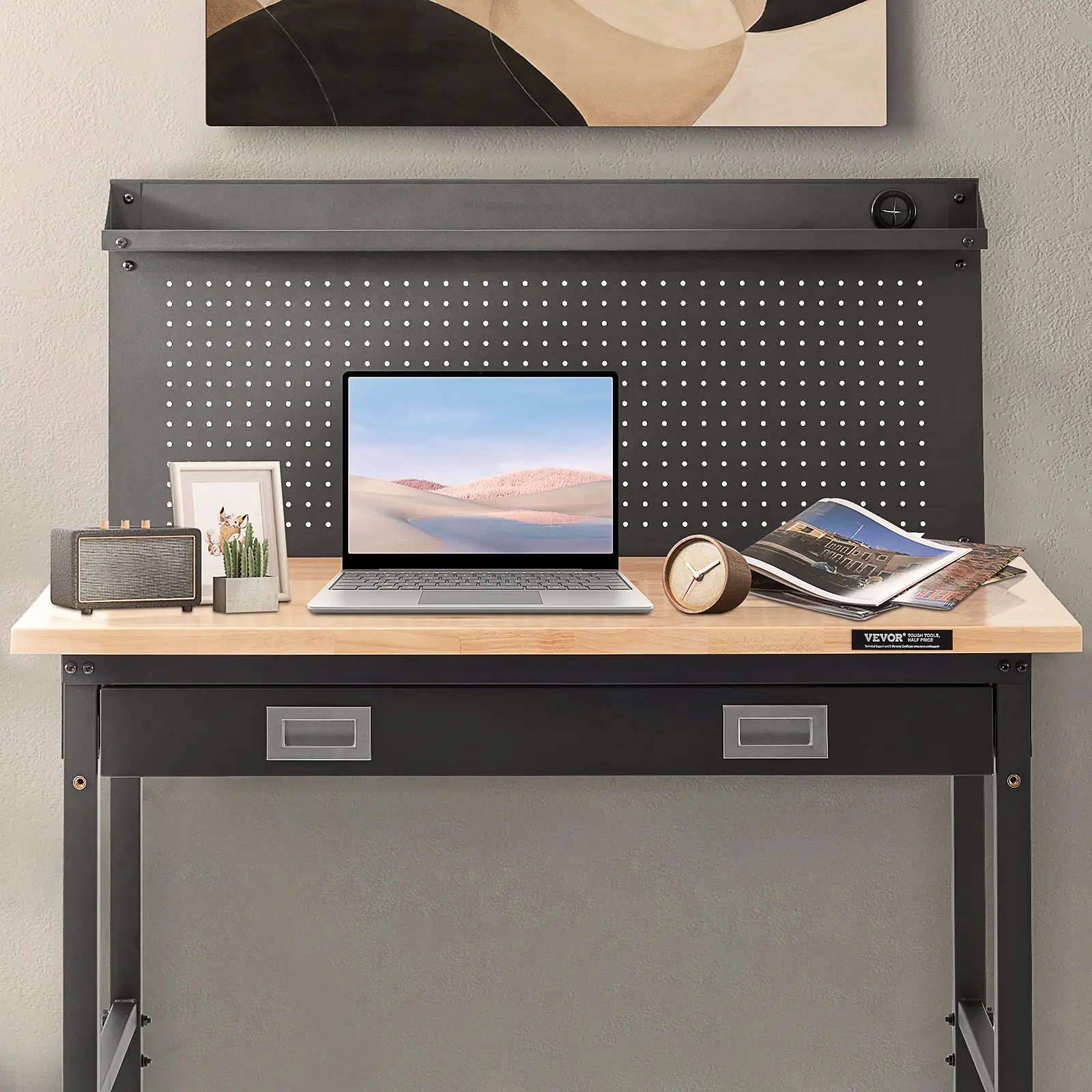 Our workbench adopts a versatile pegboard for easy tool storage, and all tools are within easy reach to keep your workspace organized.