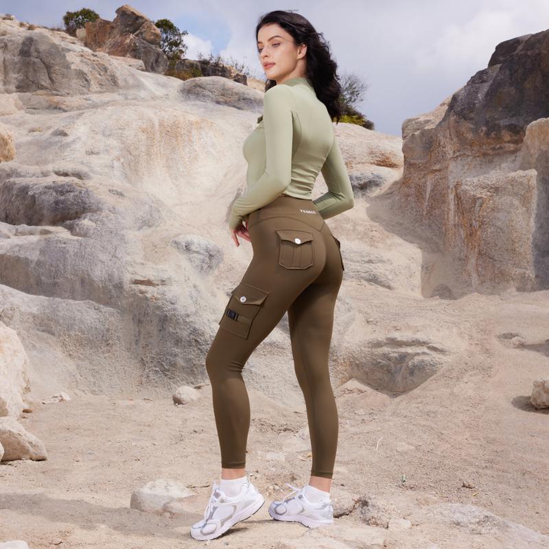 YEOREO CoreFlex Workout Cargo Leggings with Pockets for Women Hidden Scrunch Butt Lifting Leggings Gym Yoga Pants