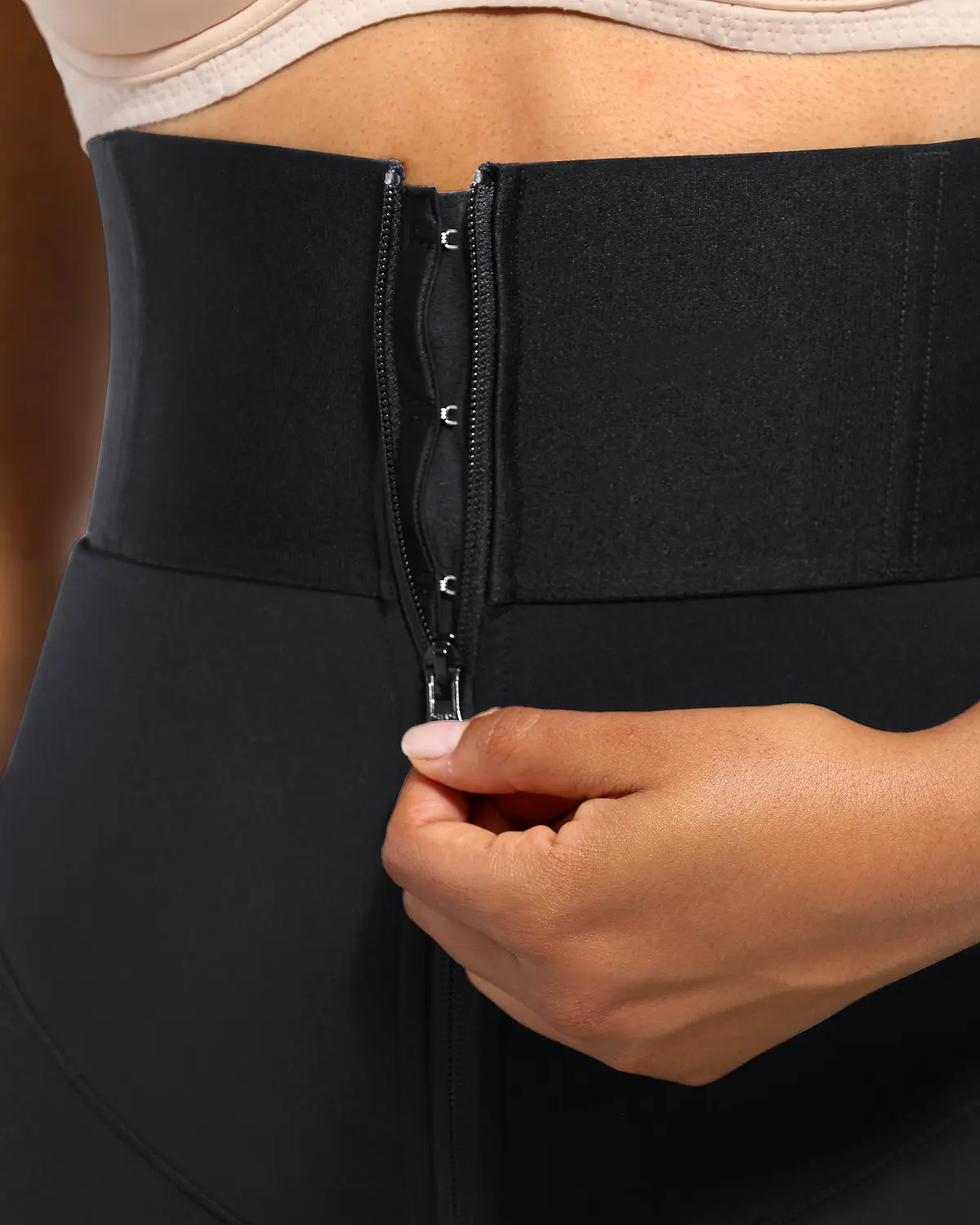 Why you'll love it! โ€ข Stay secure with a convenient hook and zipper combo closure. โ€ข The patchwork waistband provides strong control and elasticity to shape your midsection. โ€ข The high-rise waistband features four steel bones for added support and never rolls down. โ€ข Perfect for any occasionโ€”from comfortable loungewear to an intense workout โ€ข Enjoy a lifted and confident look with our unique booty-boosting design. โ€ข Flat-lock seams for maximum comfort and freedom of movement.