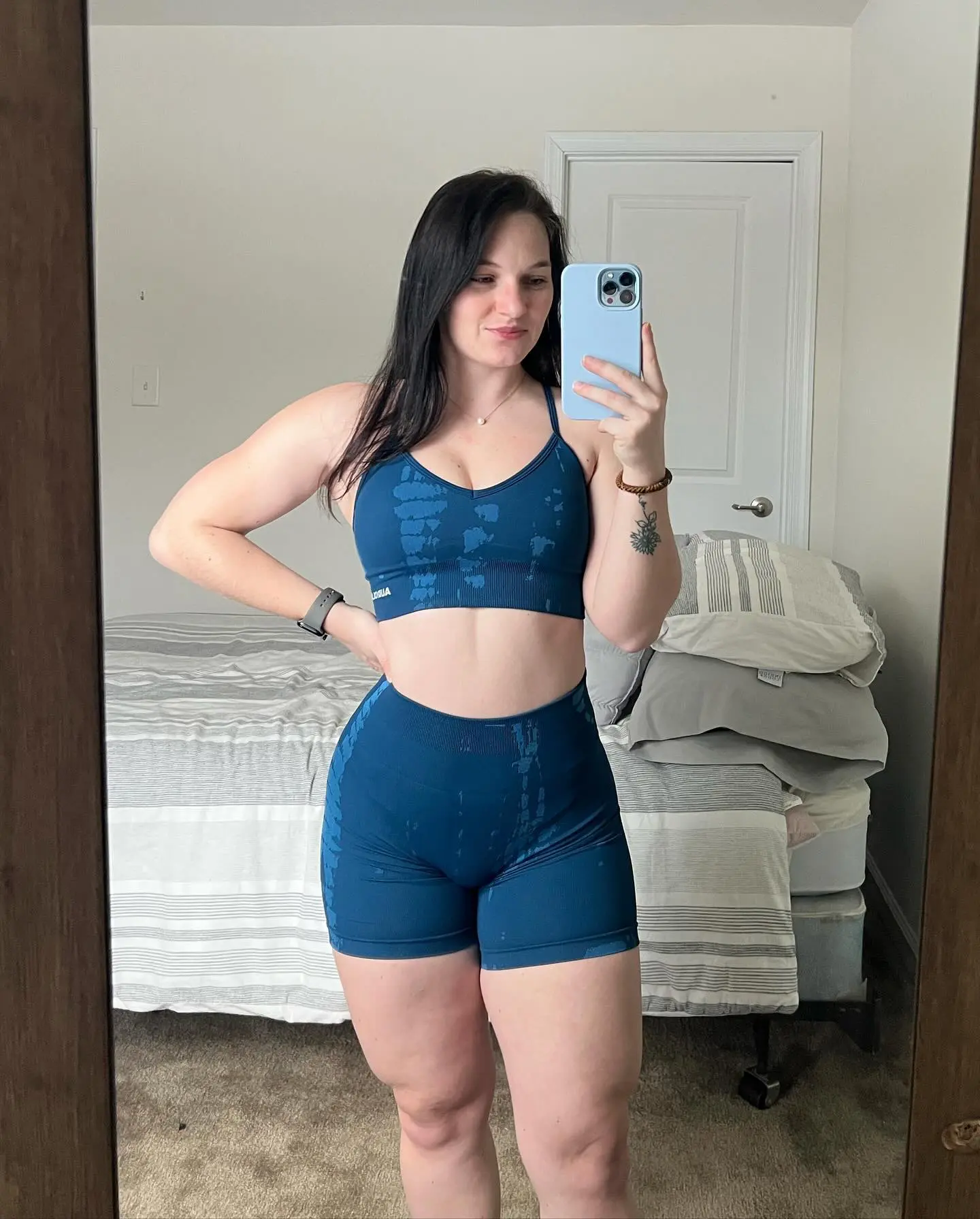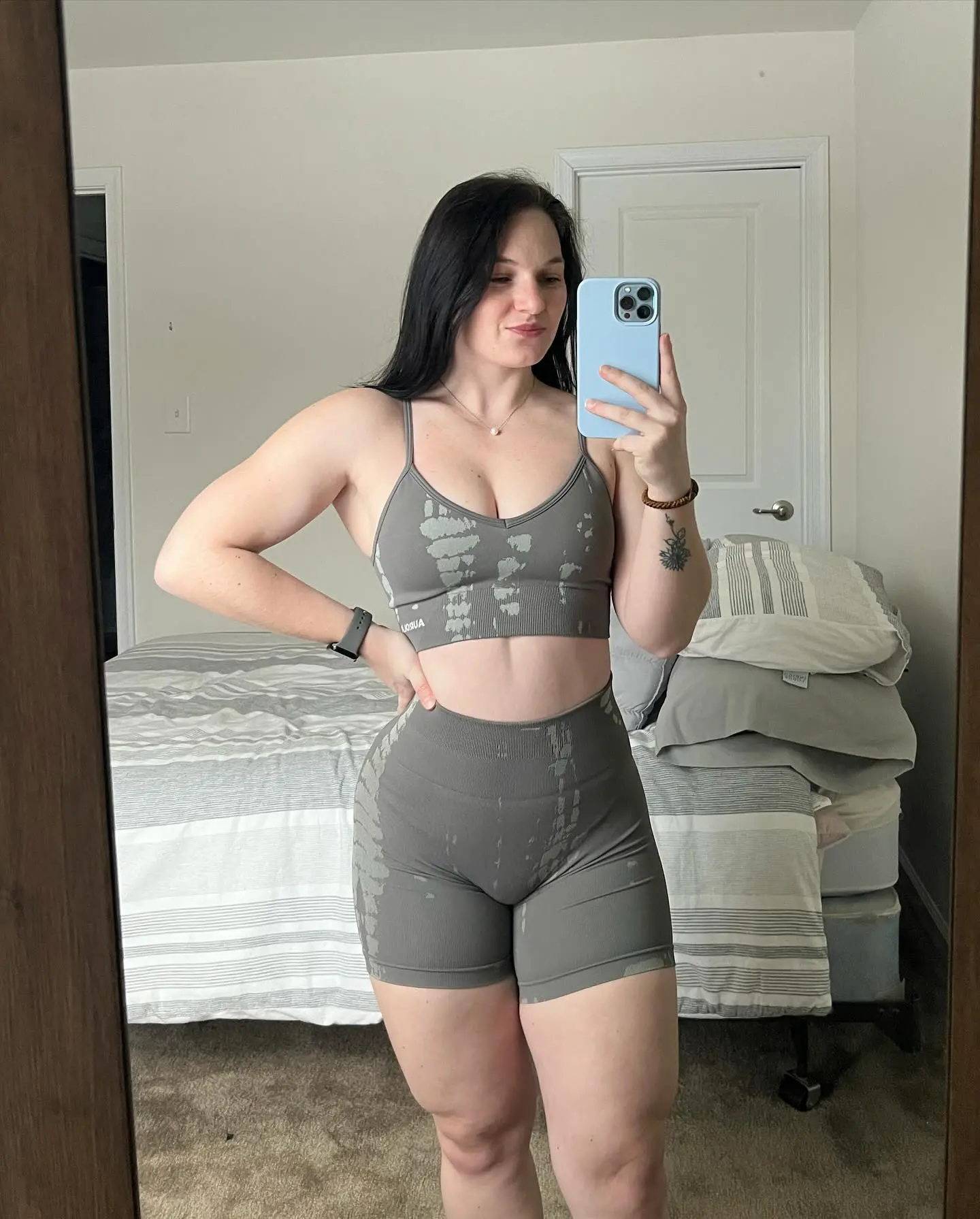 Lowkey not as bright of a grey that I imagined but it’s okay nonetheless! Super cute and comfy. You can adjust the length of the shorts if you wanted and makes the booty pop. Girls! Can be worn without or without undies