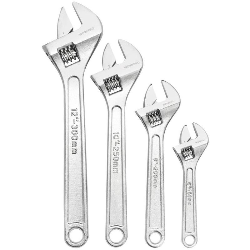 #JumpstartSale WORKPRO Adjustable Wrench Set, Forged, Heat Treated, Chrome-plated (6-inch, 8-inch, 10-inch, 12-inch)