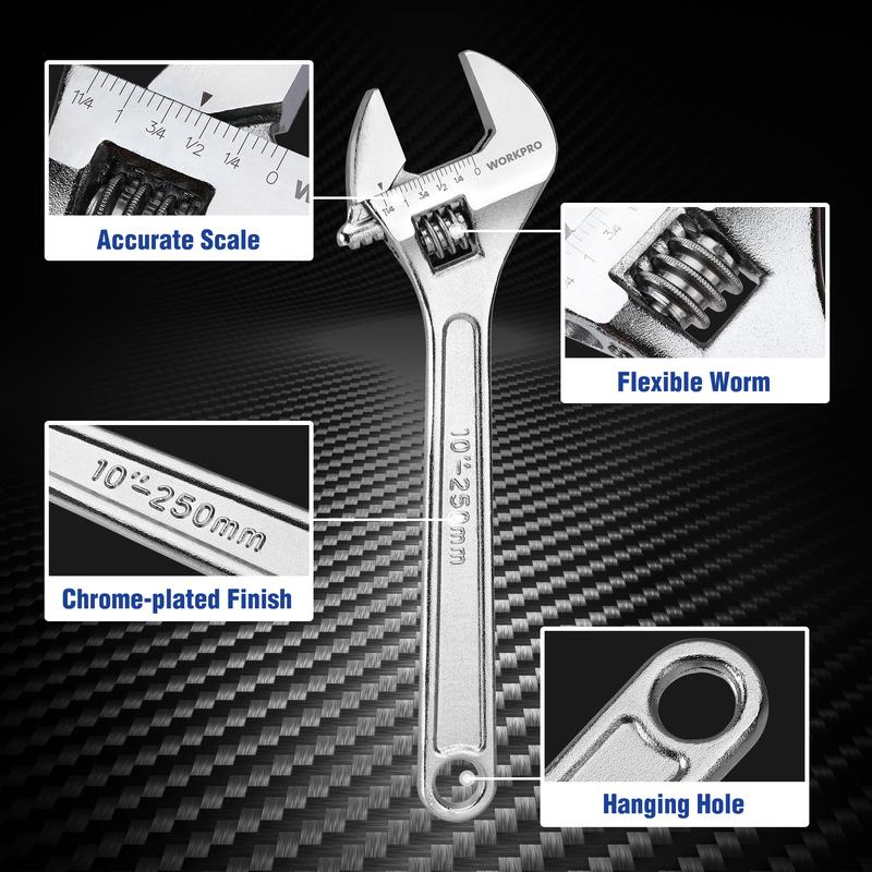 5. #JumpstartSale WORKPRO Adjustable Wrench Set, Forged, Heat Treated, Chrome-plated (6-inch, 8-inch, 10-inch, 12-inch)