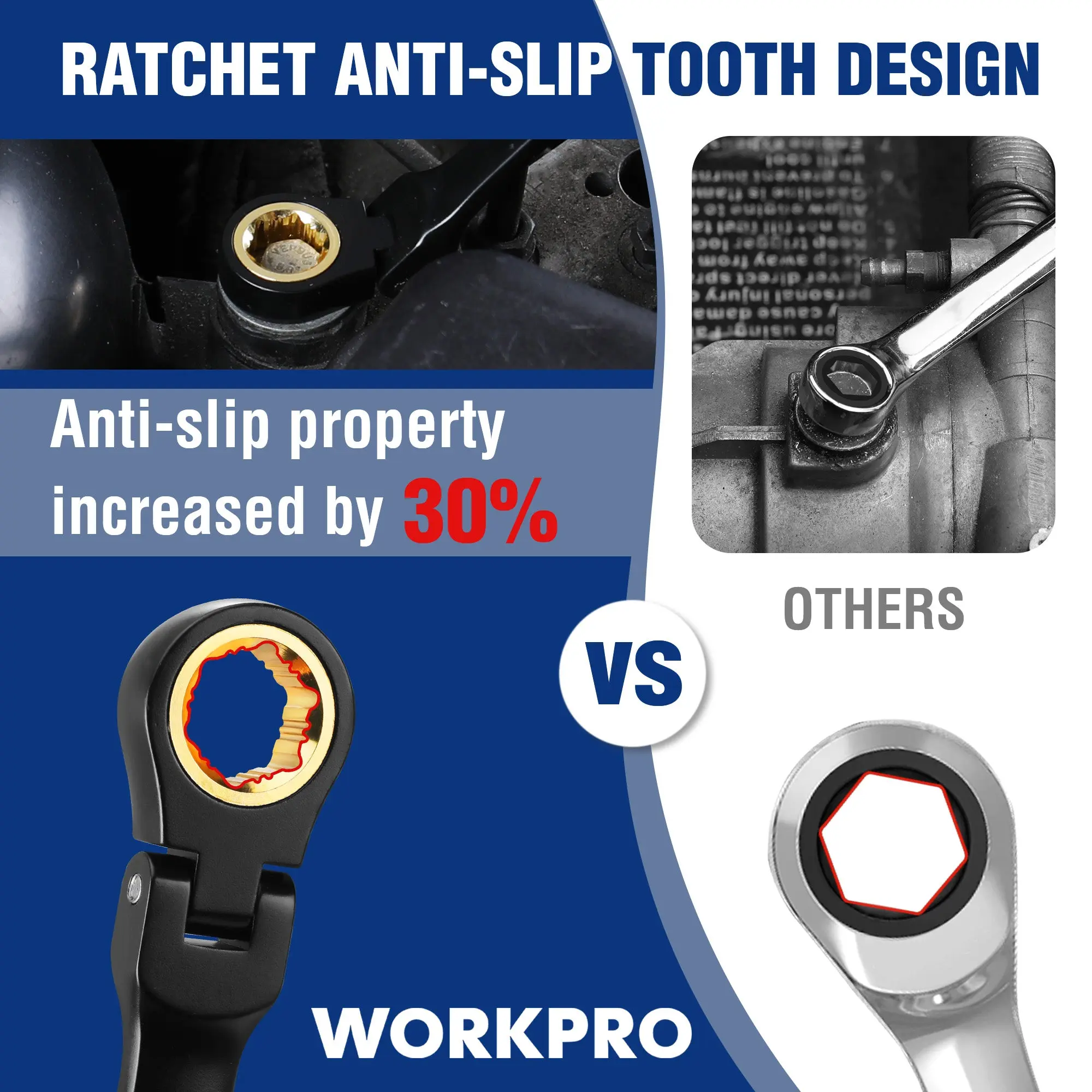 ·Anti-slip Long Wrenches: The box end wrenches are set up with a 72-tooth ratcheting system, capable of clamping round nuts within 85% of wear, anti-slip property increased by 30%; 5-degree swing to help tighten bolts efficiently, 180 degree rotating flexible heads allow you to apply leverage at any desired angle and get around obstructions great for tight spaces design