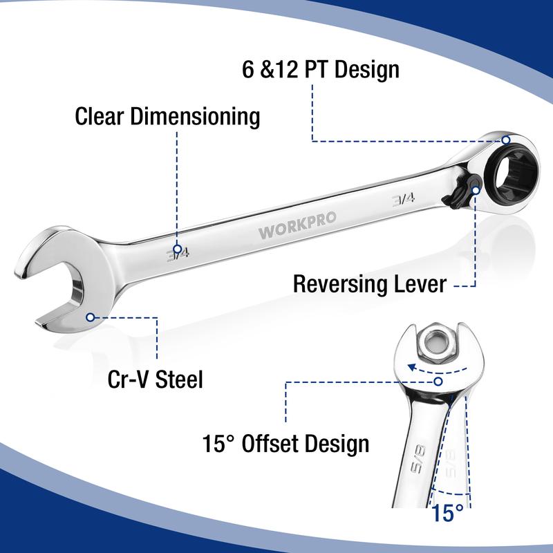 ·Durable and Reliable - 7-count reversible ratchet wrench set includes 5/16, 3/8, 7/16, 1/2, 9/16, 5/8, 3/4" with a rolling pouch. Each wrench is made of heat-treated chrome vanadium steel. Polished surface ensure durability and resistance to corrosion. Rolling pouch for easy storage and portability.