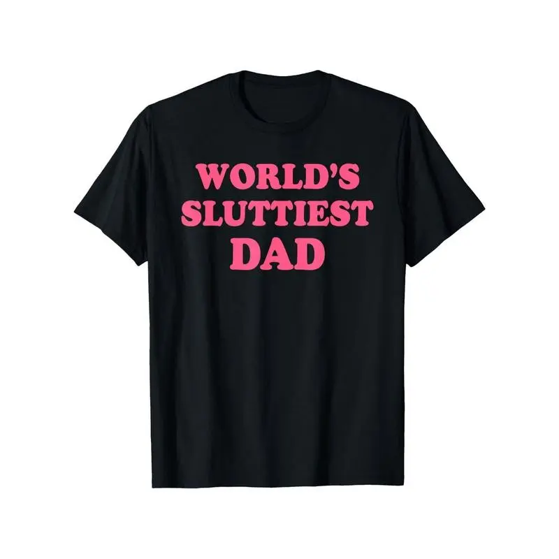 World's Sluttiest Dad Funny Graphic T-Shirt for Men - 100% Cotton Black Short Sleeve Round Neck Casual Tee, Lightweight & Breathable for Sports, Camping, Fishing, Casual Men's Wear | Humorous Graphic Tee | Breathable Fabric, Fathers Day Tshirt