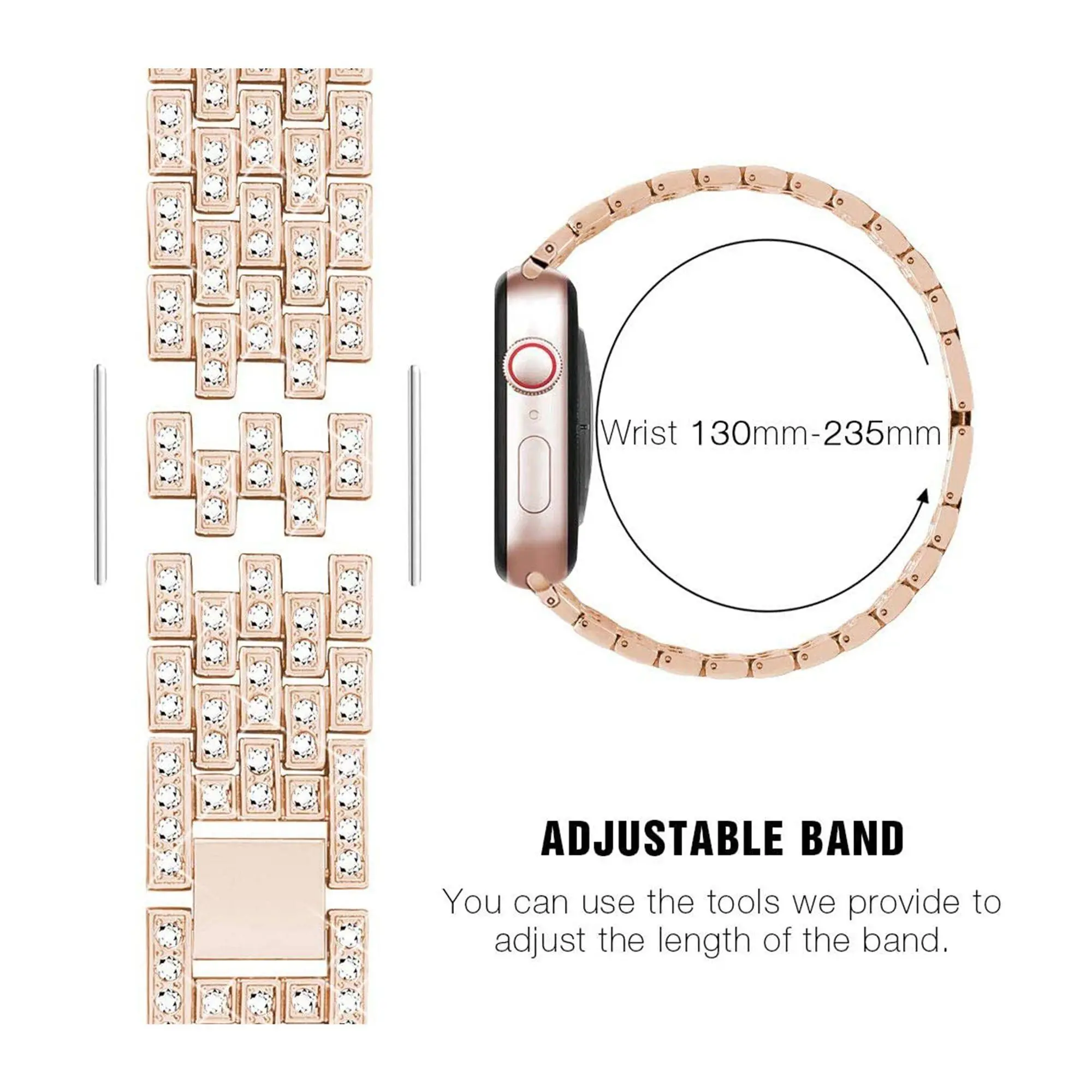 Looking to add a little sparkle to your Apple Watch? The WorryFree Gadgets metal band with rhinestone accents is your go-to for a chic upgrade. Whether you're heading to a party or just want to jazz up your everyday look, this band fits Apple Watch sizes 42mm, 44mm, and 45mm snugly and stylishly. Choose from classic Silver or warm Rose Gold to match your vibe. Measuring about 9.69" x 2.44" x 0.71", it offers a comfortable fit without sacrificing elegance. The durable metal construction ensures your watch stays secure while turning heads. Please note, the Apple Watch itself is not included. Ready to glam up your wrist? Slip on this dressy band and let your watch shine with personality!