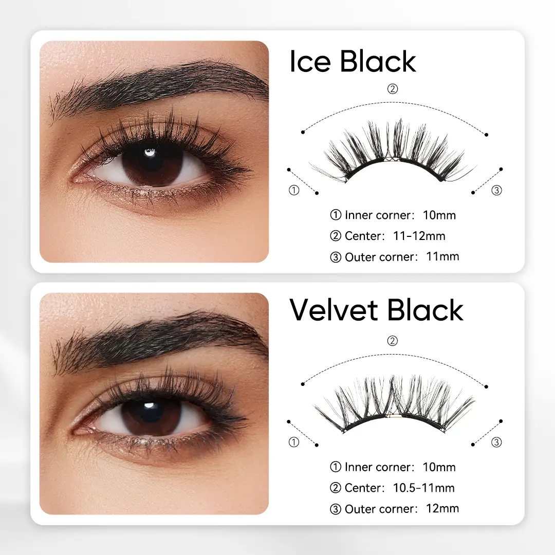 I am so in love with these, I can’t think of anything bad to say. The velvet black is more natural delicate looking and the ice black is a bit bolder but beautiful. Customer service is also so nice!