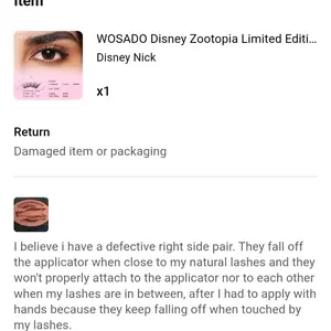 the right and left lashes don’t even look the same. the right lash seems defective, curves the opposite way than the left and the lashes on the right all point out to the side rather than up. so disappointed! ive been a repeat customer of wosado never had this issue before. will be returning.