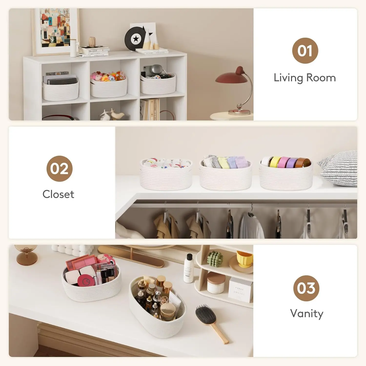 Lifewit 6 Pack Woven Baskets - Cotton Rope Baskets for Storage, White, Ideal for Organizing, Round Storage Box Caddy for ClosetLifewit 6 Pack Woven Baskets - Cotton Rope Baskets for Storage, White, Ideal for Organizing, Round Storage Box Caddy for ClosetLifewit 6 Pack Woven Baskets - Cotton Rope Baskets for Storage, White, Ideal for Organizing, Round Storage Box Caddy for Closet