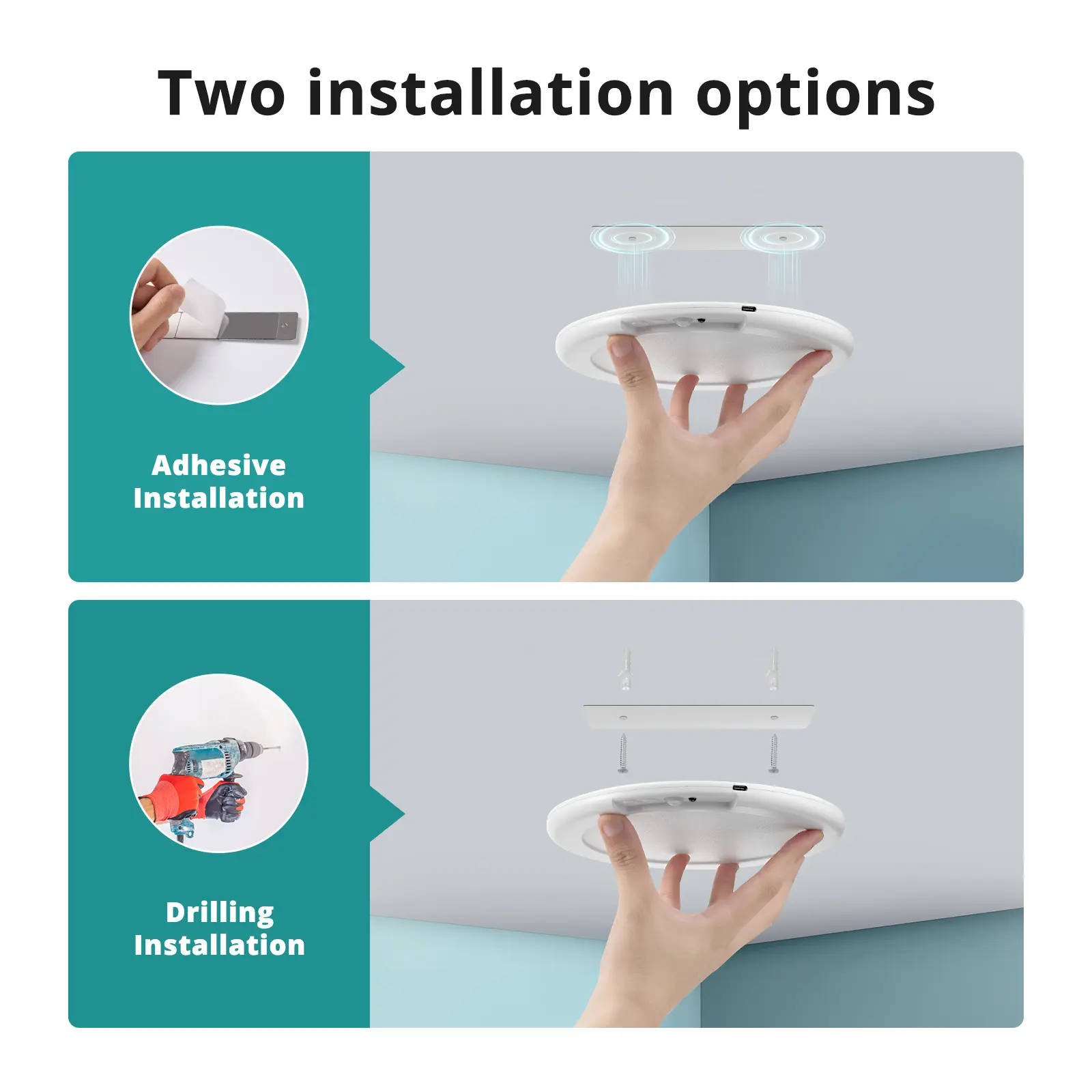 Ultra-Thin & Easy Installation: Ultra-thin and magnetic design, measuring 7.48 inches and 0.59 inches thick.The battery powered ceiling light has two installation methods, you can choose to stick it or screw it. Note: The minimum installation distance between two or more products is 1.5m/4.92ft to avoid affecting the function of the induction module due to placing them too close