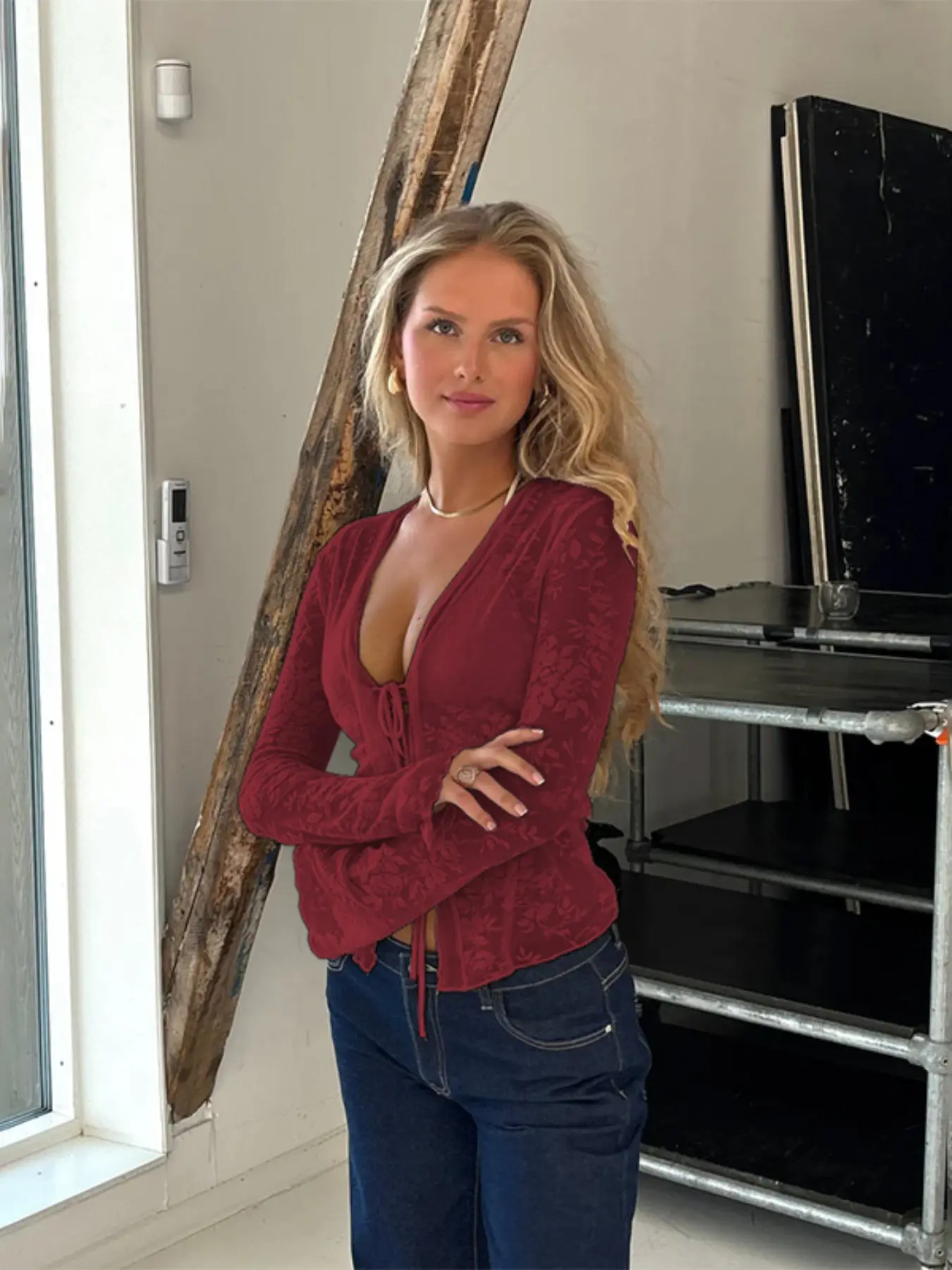 【Unique Ruffled Sleeves】: Featuring distinctive ruffled flared sleeves that create a bold visual impact, setting this top apart from traditional options.