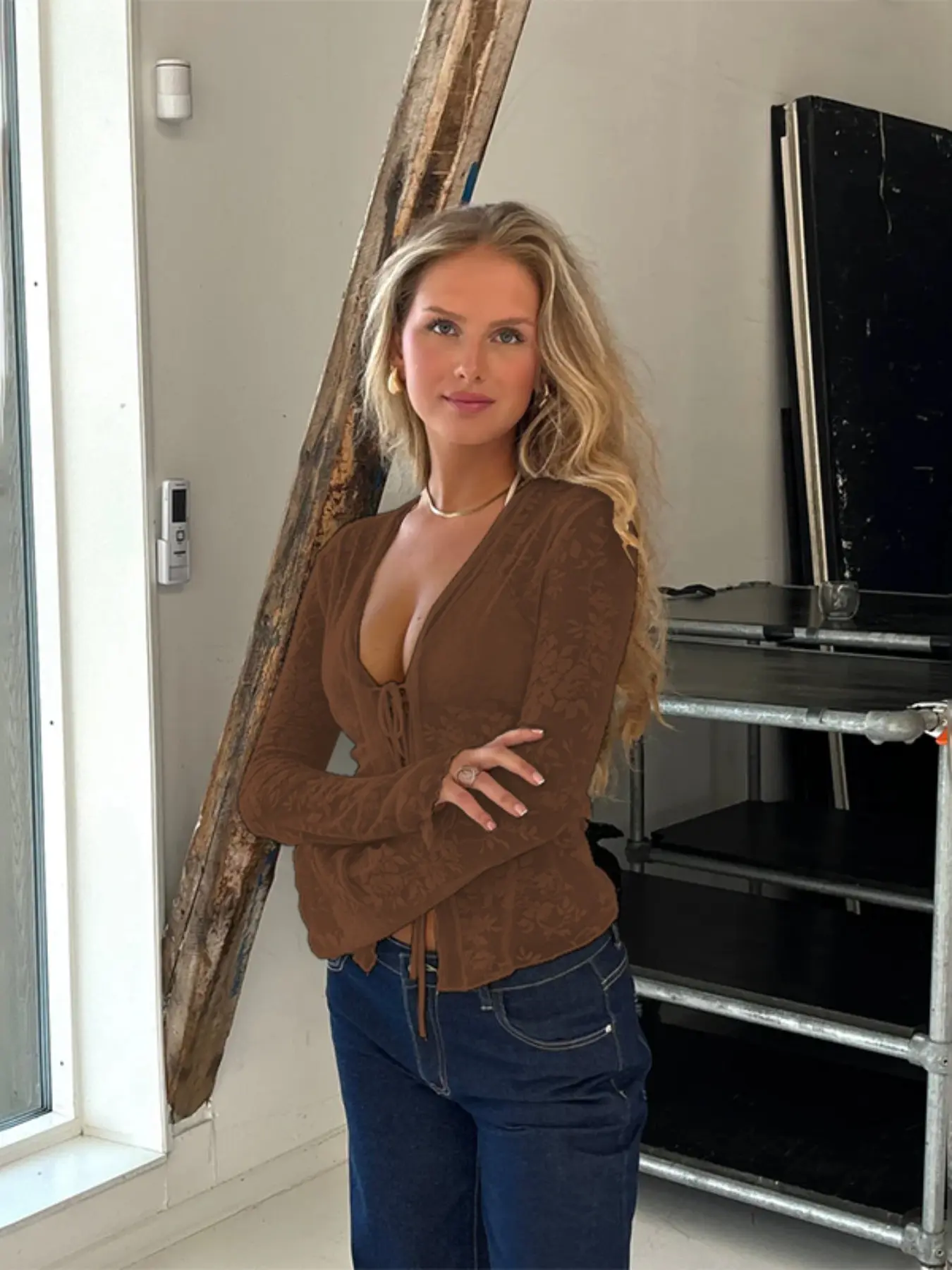 5. Women's Plain Ruffled Bell Sleeve Top, Sexy Slim-Fitting Graphic Blouse, Fall Fashion, Women's Casual Wear, Stylish and Comfortable