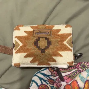 The Wrangler Women's Aztec Patterned RFID Blocking Card Holder is ideal for modern needs. It includes a cash coin pocket and a wrist strap for convenience. Stay organized and stylish on the go.