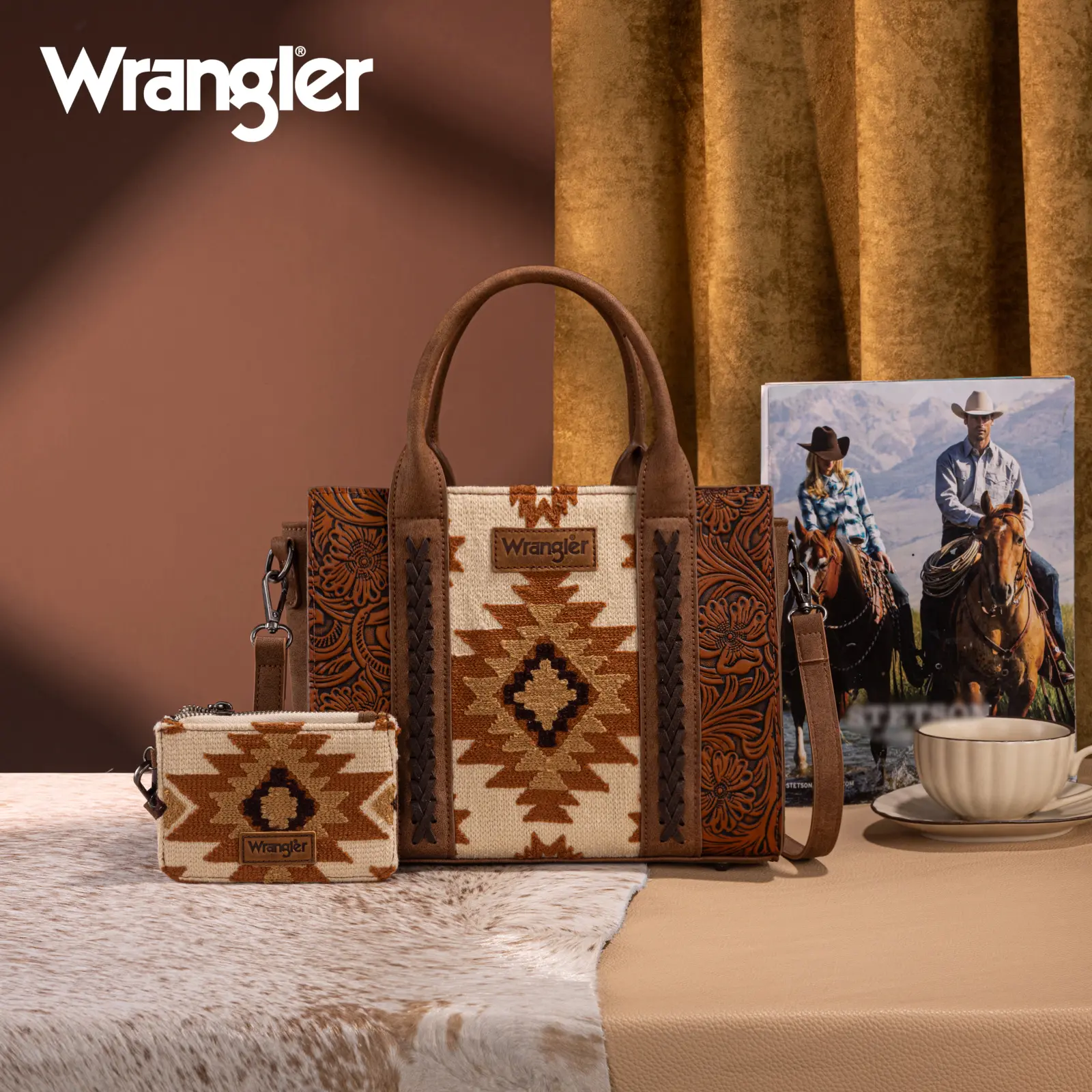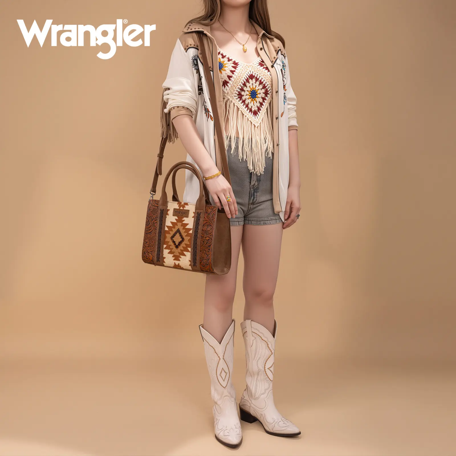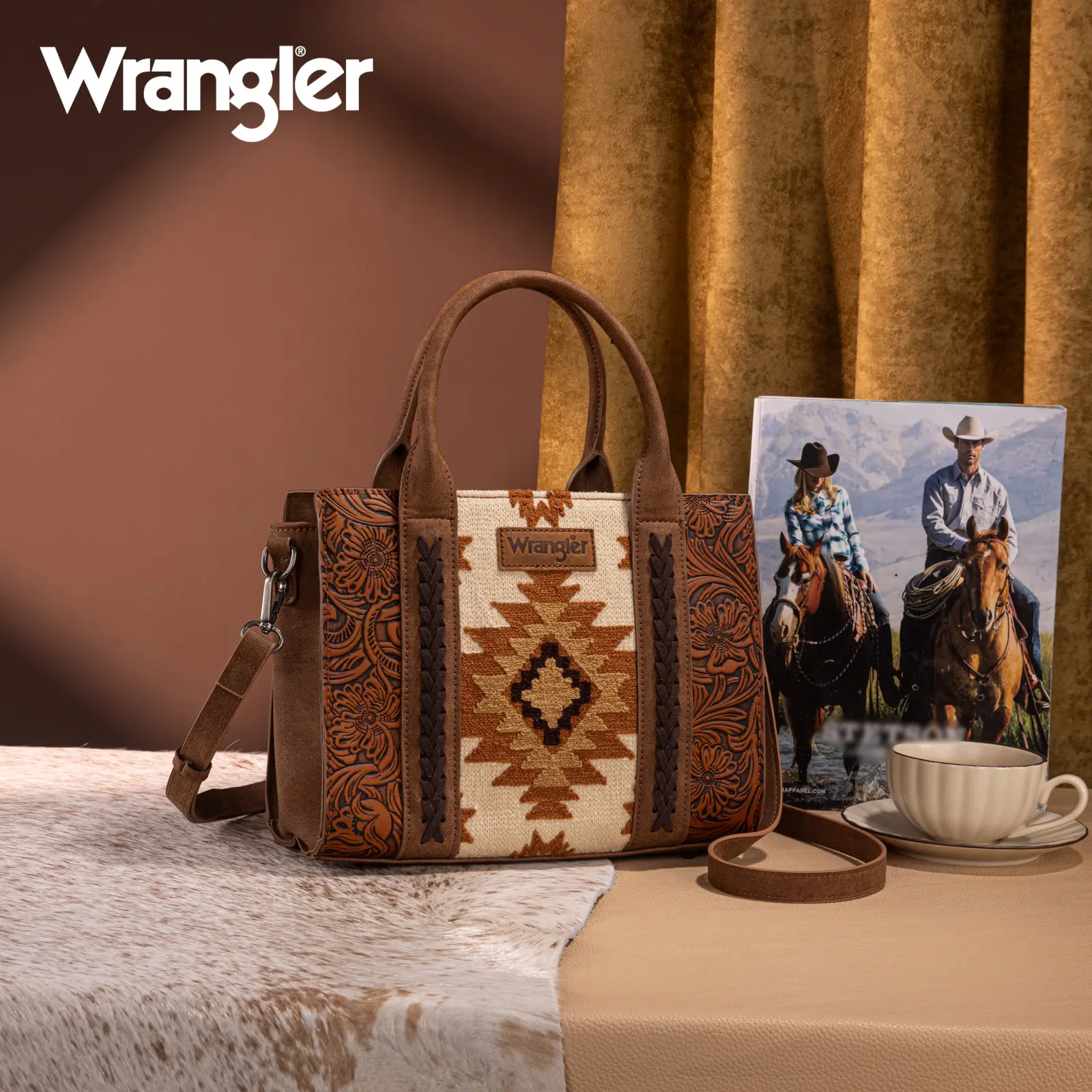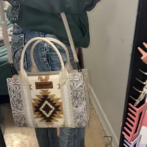 The Wrangler Aztec Patterned Southwestern Structured Tote Bag for Women is a perfect blend of style and functionality. It features pieced embroidery and tooled faux leather lining, making it a standout accessory. Ideal for everyday use, this bag combines fashion with practicality. Get yours now at Buckle!