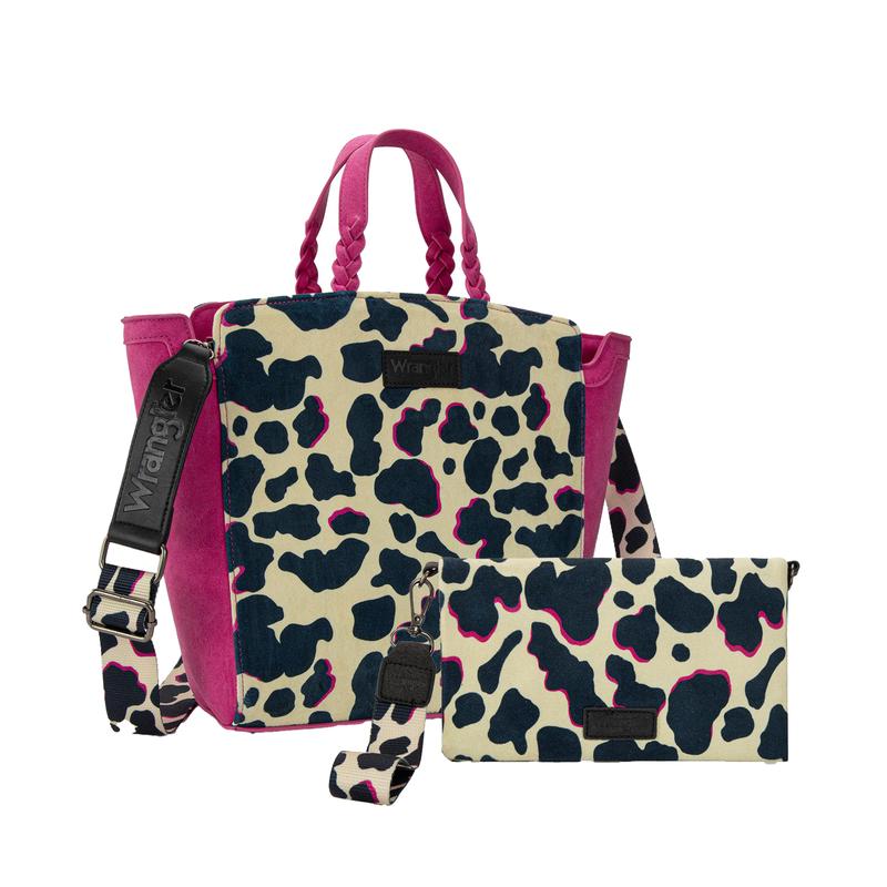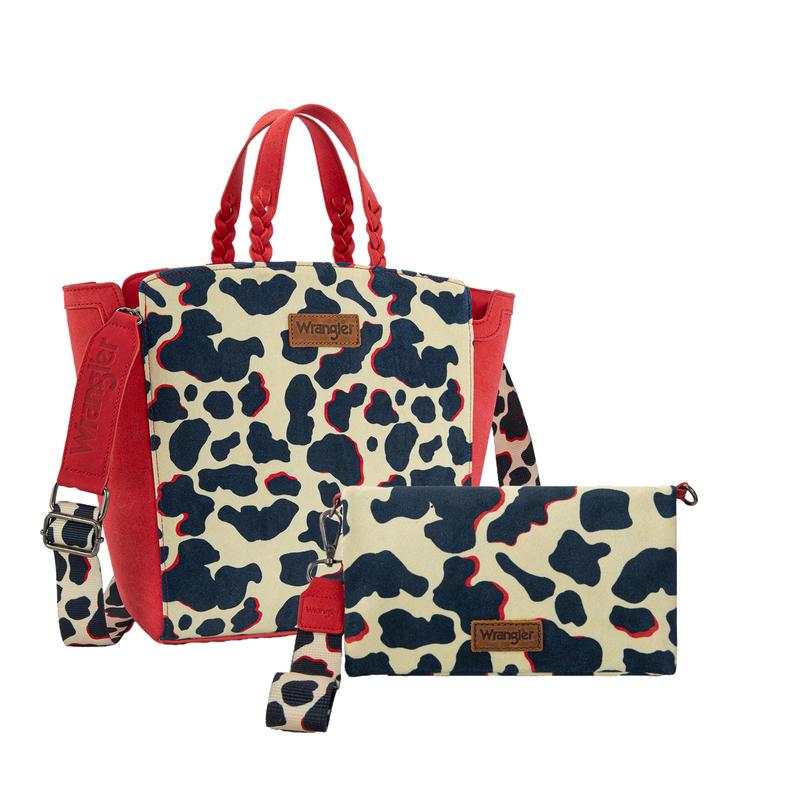 Wrangler Cow Print 2PCS Set Top-Handle Handbags & Wallet for Women