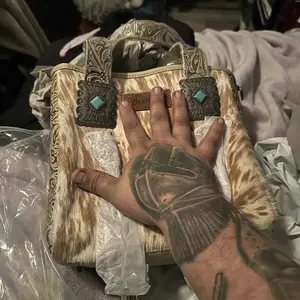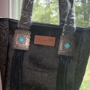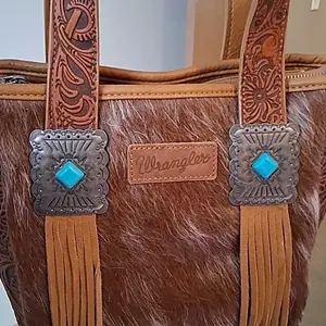 ·Wrangler western tote bag combined with horsehair design and vintage floral tooling.