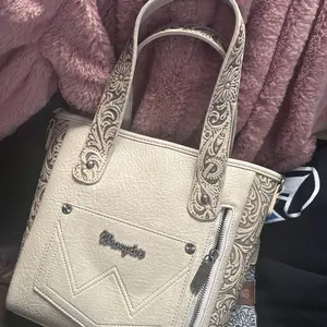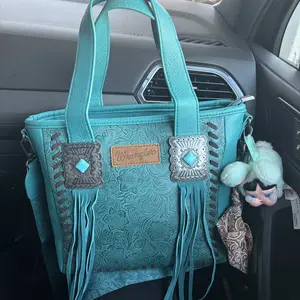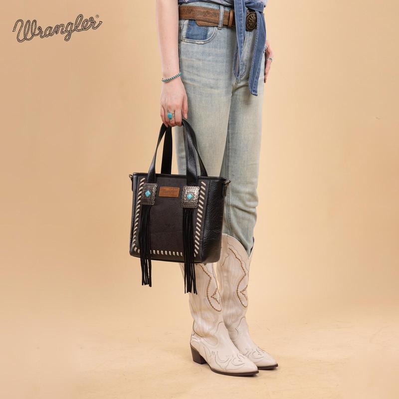 ·Wrangler western tooled fringe tote bag - a stylish western handbag crafted with intricate floral tooling.