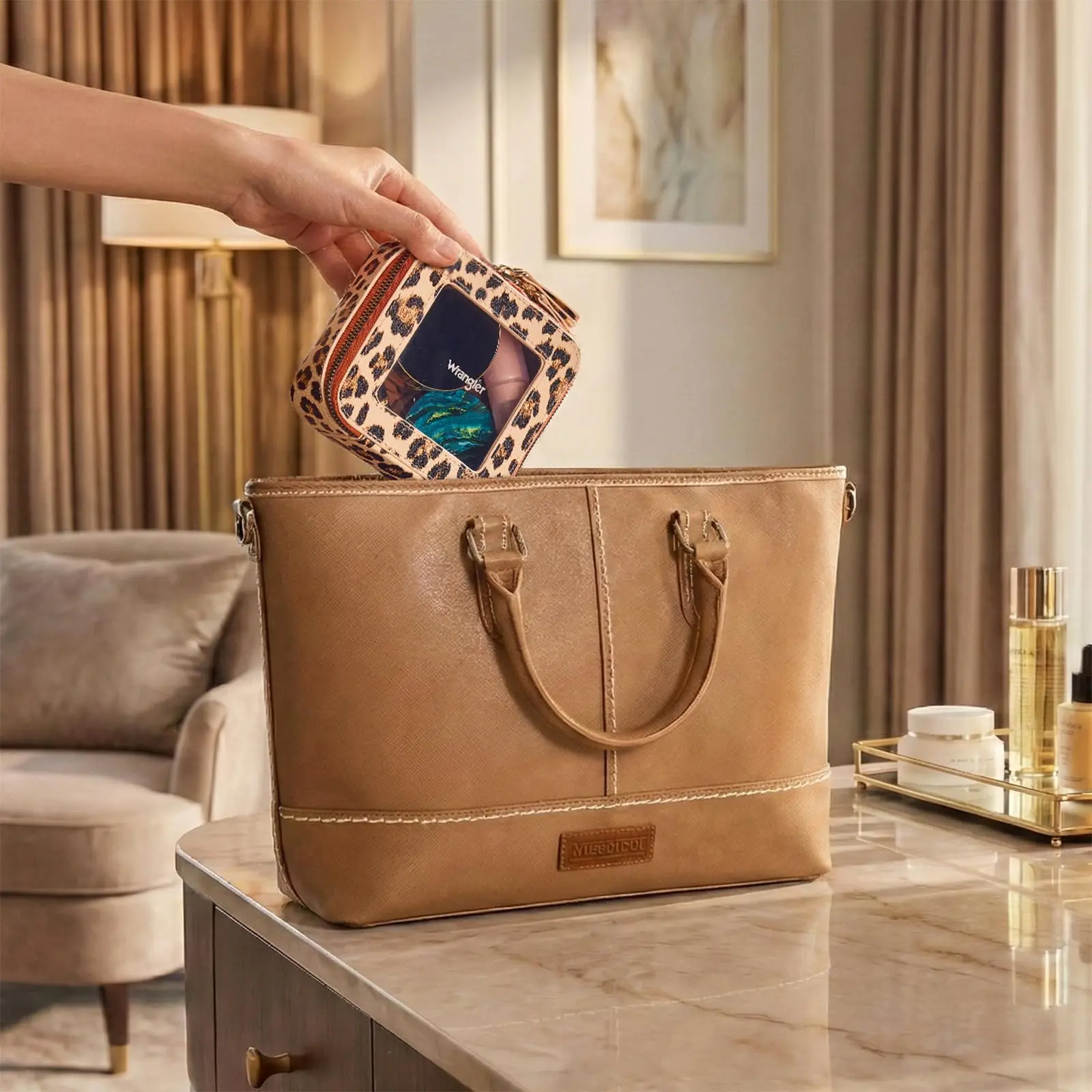 Crafted from crystal-clear PVC and rugged faux leather, this makeup bag is built for durability. The reinforced structure resists deformation, while the sturdy material protects your valuables from impacts, spills, and everyday wear, embodying the tough Wrangler legacy.