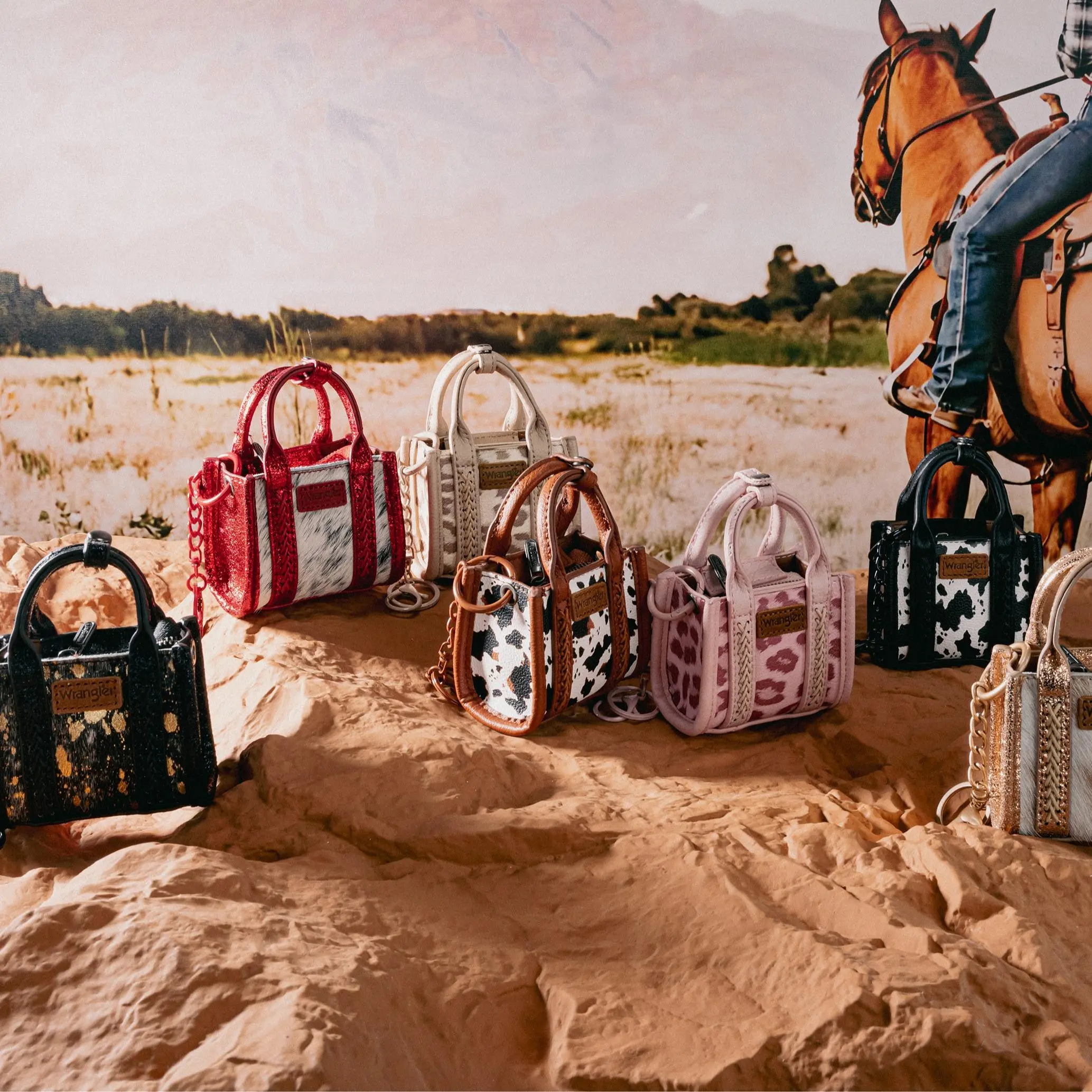 Quality of work: These are a hot item right now! I myself love them and im working on my collection. These mini bags are genuine leather with all the little fringes and studs. They look like the big bags.