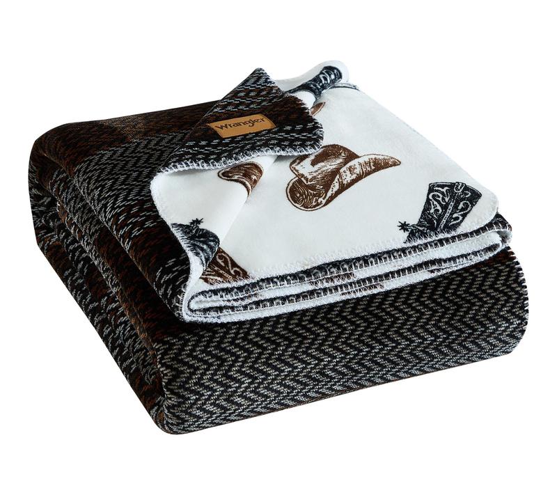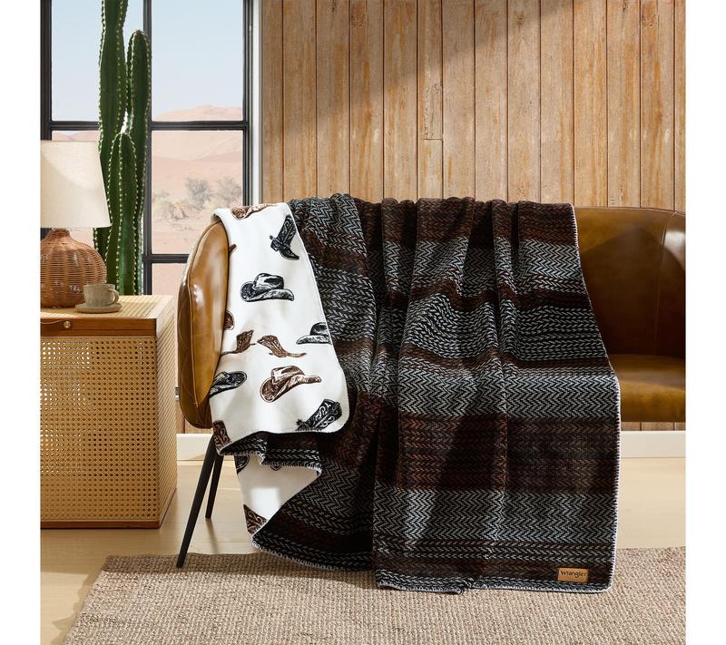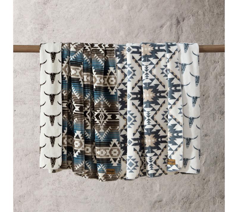 Transform your relaxation time with this king-size blanket, designed to infuse your space with southwestern charm. One side showcases classic Nash stripes while the reverse features striking longhorn skulls, offering two bold looks in a single, cozy layer. Whether draped over the bed or wrapped up for movie night, it's a stylish accent for any room. From Wrangler.
