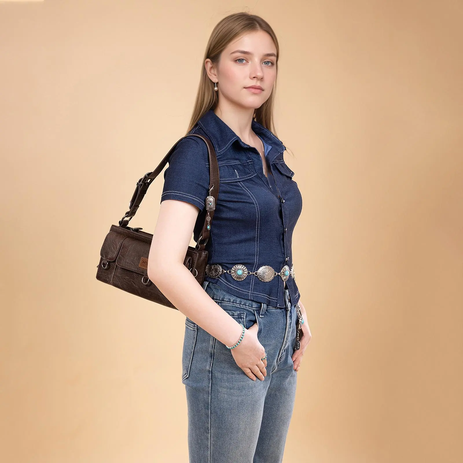 ·Y2K Meets Western Style: Wrangler mini shoulder bag stands out with its iconic western belt buckle and vintage Y2K flair, where retro flair meets rugged individuality. Built for turning heads at music festivals, night outs, parties
