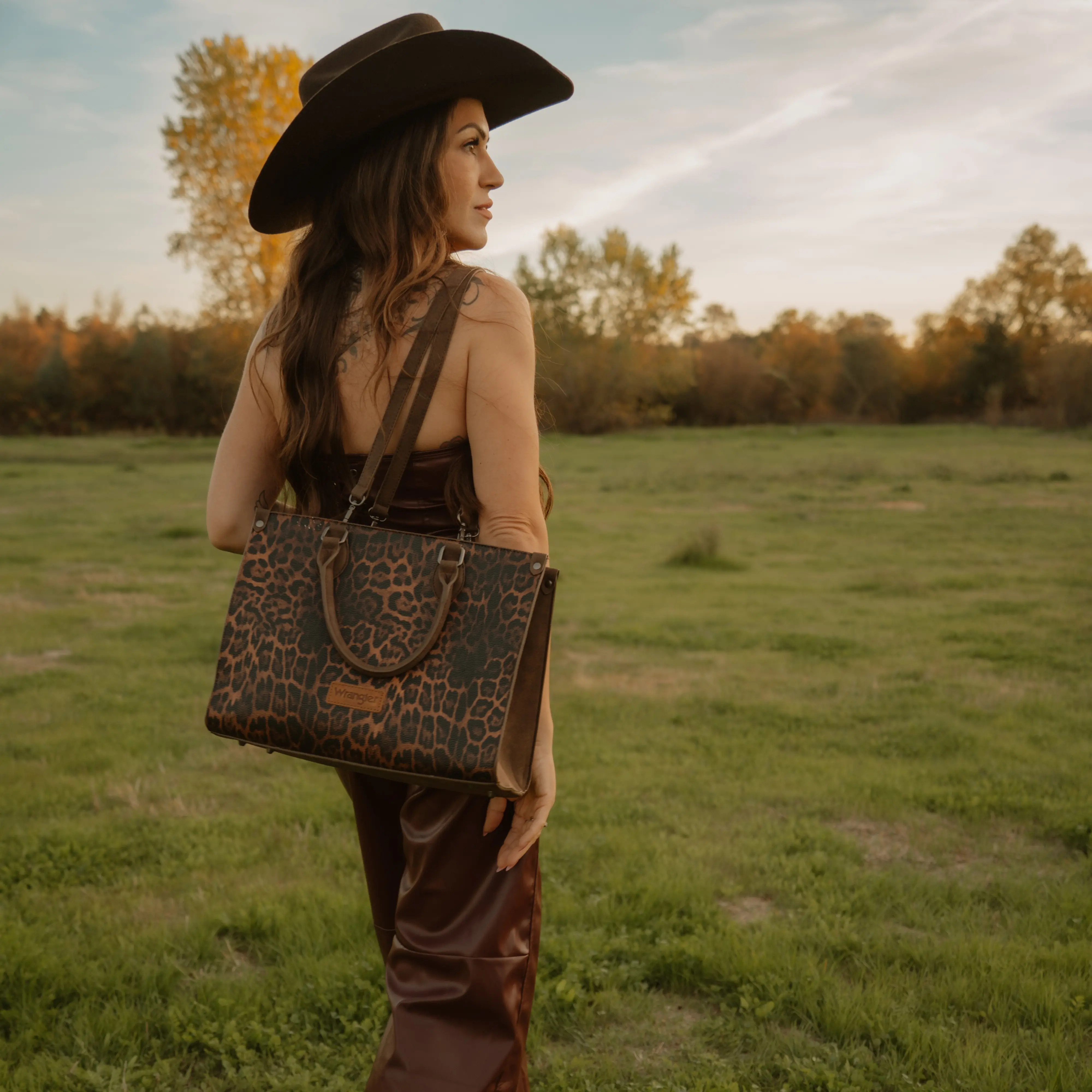 Perfect size tote for moms who are tired of carrying a diaper bag. Inside has a large pocket on each side that can hold a medium sized tablet or a smaller laptop. Love the espresso colored leopard print. Very pleased with this purchase