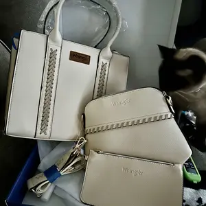 Incorrect purse received, only two pieces and wrong "cross body" the second was a small backpack style purse smaller than a wallet. Completely different from what was advertised.