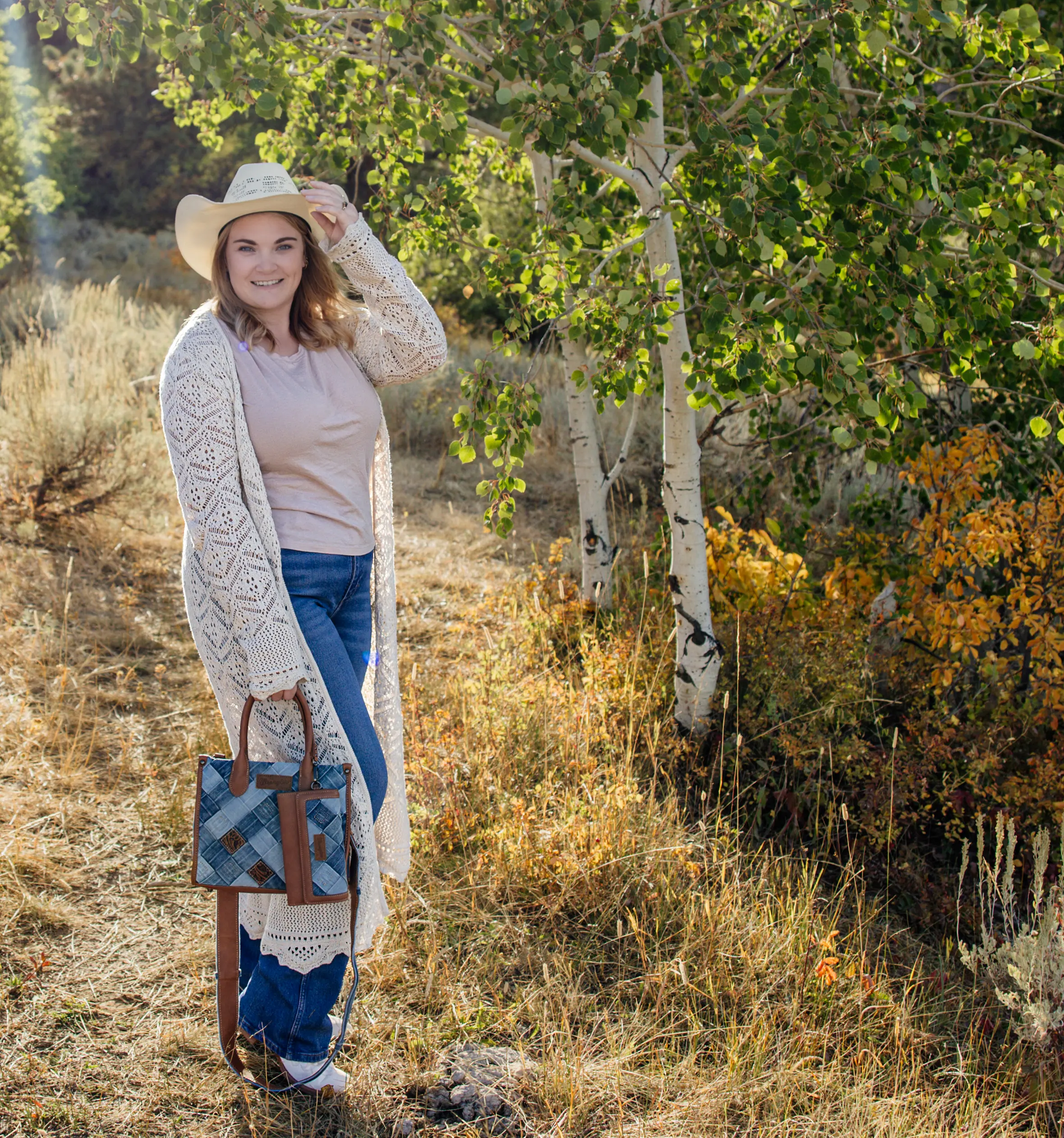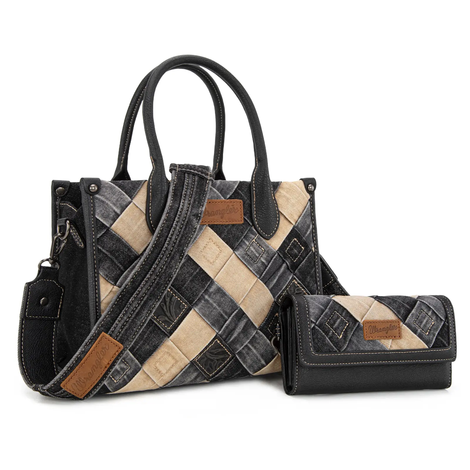 This set includes a tote bag and a wallet, both with a patchwork design. Ideal for carrying essentials with style. The set is designed for practicality and fashion. Enjoy the blend of style and utility in one set.