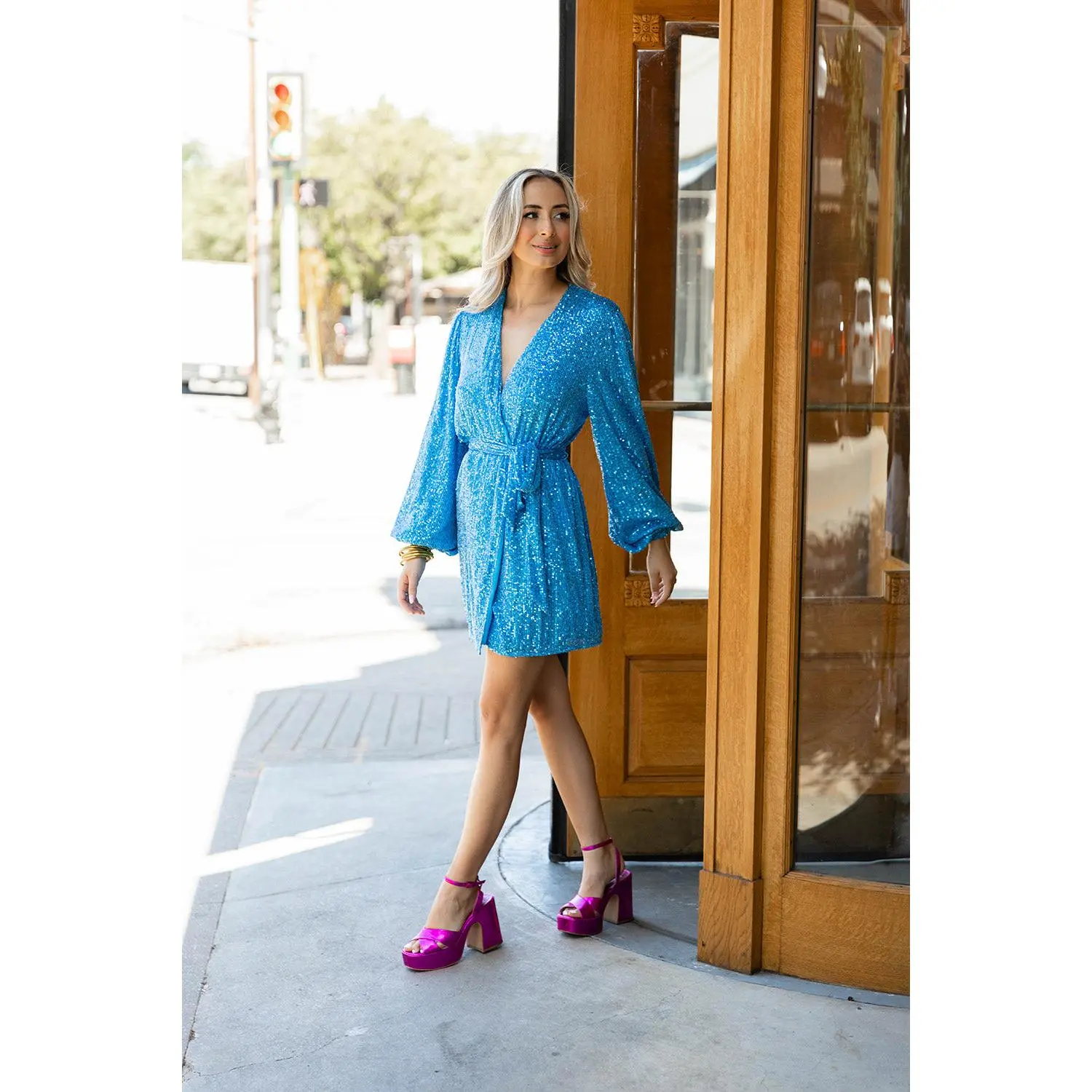 5. Adeline Sequin Wrap Dress - Blueberry