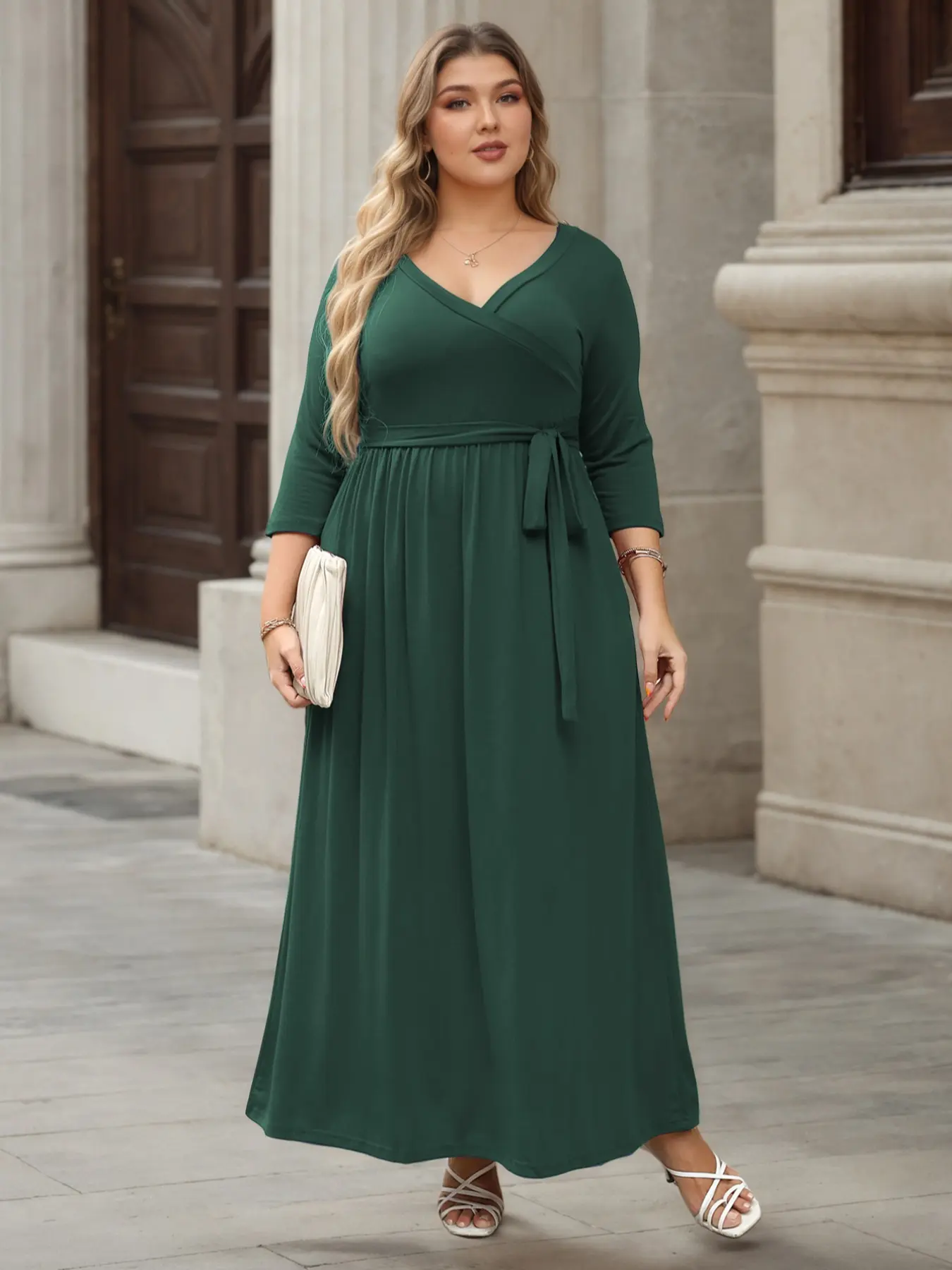 Women's V Neck Stretchy Casual Long Plus Size Dress, Perfect for Bridesmaids, Vintage Style Wedding & Party Wear, Comfortable All-Day Fabric