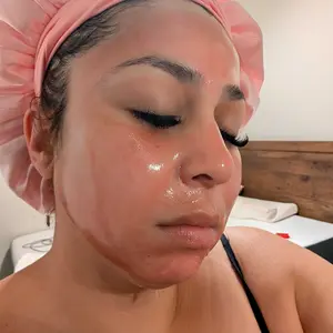 Step 1: As the final step in your skincare routine, use a silicone brush or applicator to evenly apply a layer of the wrapping mask, carefully avoiding the eyes, lips, eyebrows, and hairline.