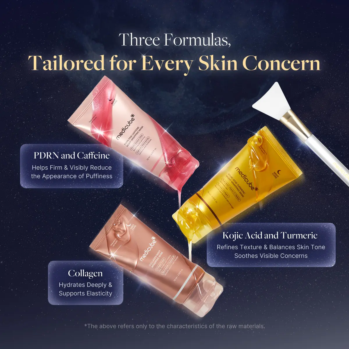 Clinical trials demonstrate impressive outcomes with medicube Turmeric Night Wrapping Mask: Clinical trials reveal remarkable improvements with medicube Collagen Night Wrapping Mask: +6.8% enhancement in skin texture after one use, +24.7% reduction in uneven skin areas after 3 days and +33% increase in skin radiance after a single application.
