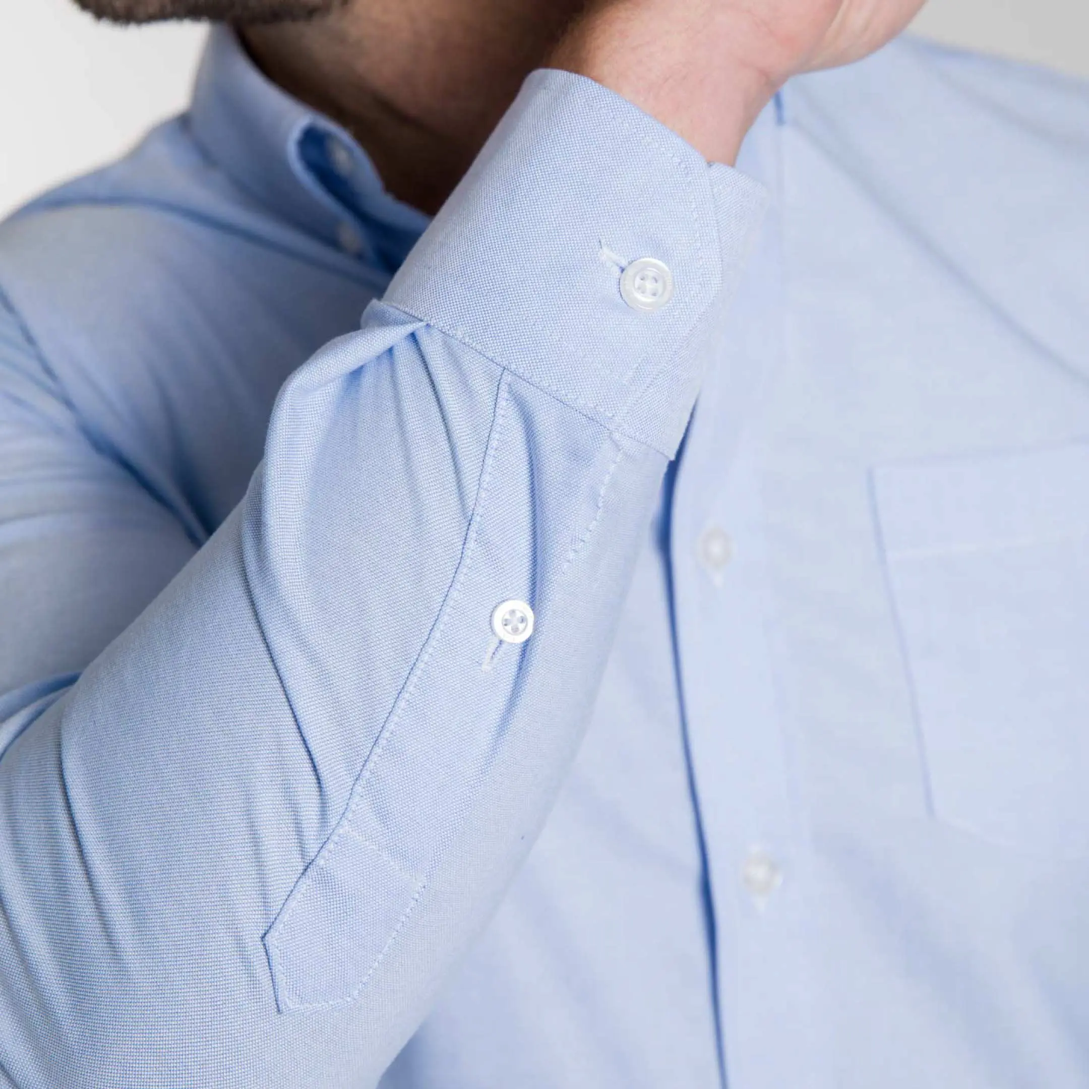 A blue oxford is one of the timeless pieces every guy should own. The one drawback with a lot of oxfords is that they are wrinkle prone. Ash & Erie took care of that for us. The weight of the fabric is a perfect in thickness and not overly stiff like many oxfords. Also, I was pleasantly this product does not have that shiny look that some wrinkle-free products exhibit. Length is perfect for untucking for me at 5’6”. Cuffs and collar are proportioned nicely. Fits true to size.