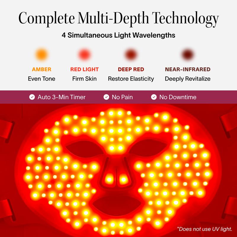 ·WrinkleBoost Tech: Amber (605nm), Red (630nm), Deep Red (660nm), and Near-Infrared (830nm) delivered simultaneously.