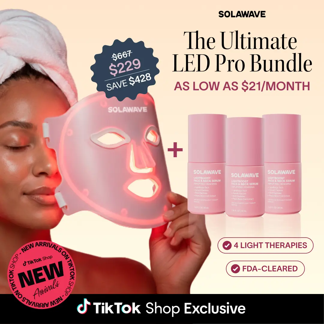 The Wrinkle Retreat Pro Face Mask delivers four wavelengths of light therapy in three-minute hands-free sessions. The LightBoost Serum amplifies results and keeps skin hydrated between treatments. This bundle offers full face and neck coverage, providing everything you need for effective skincare.