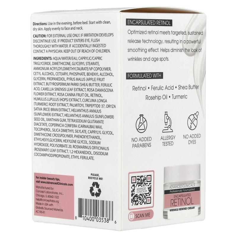 Advanced Clinicals Encapsulated Retinol, Wrinkle Rewind Cream, 2.5 fl oz (74 ml)