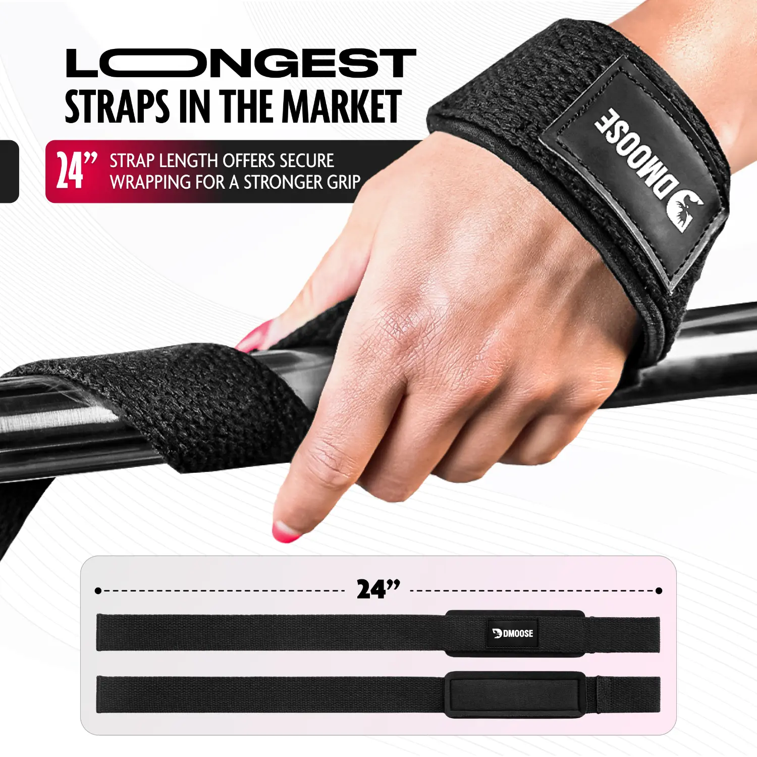 Take your lifting to the next level with DMoose Lifting Wrist Straps. Designed for dedicated lifters, these straps are crafted from 100% pure cotton for breathability and comfort. The 24" length ensures a stronger grip, while 4mm neoprene padding cushions your wrists during heavy lifts. Say goodbye to compromised lifts and hello to maximizing gains with DMoose Lifting Straps.