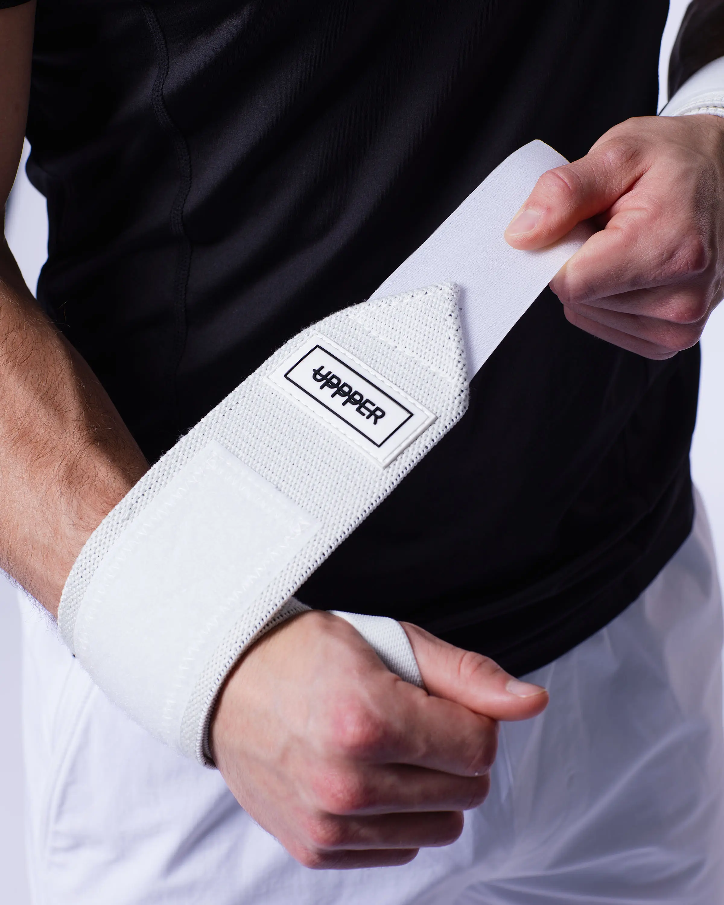 5. UPPPER Wrist Wraps White 2.0 - 19" Wrist Support for Powerlifting and Gym Workouts, Hook-and-Loop Closure, Thumb Loop