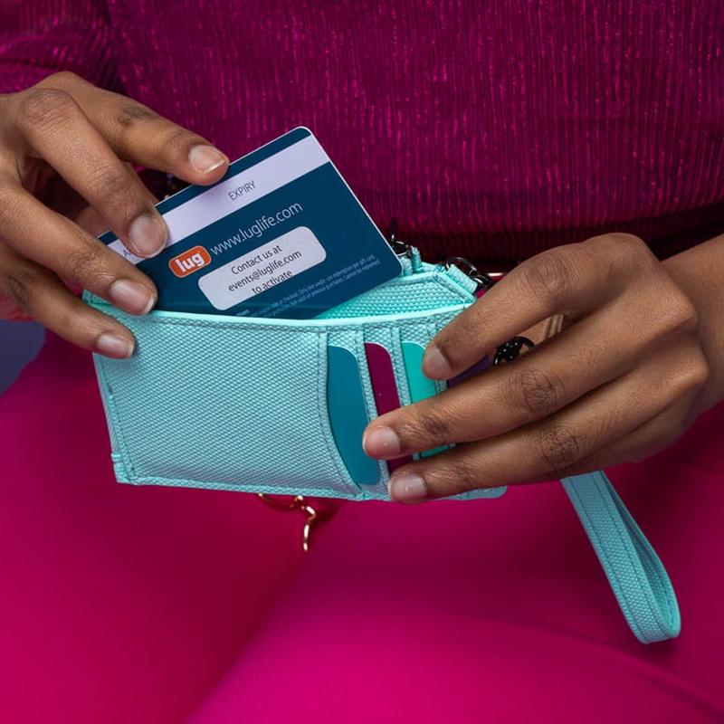 Such a cute little wallet (white) can easily transfer to another bag and matches all bags so I’ll always have my most used cards