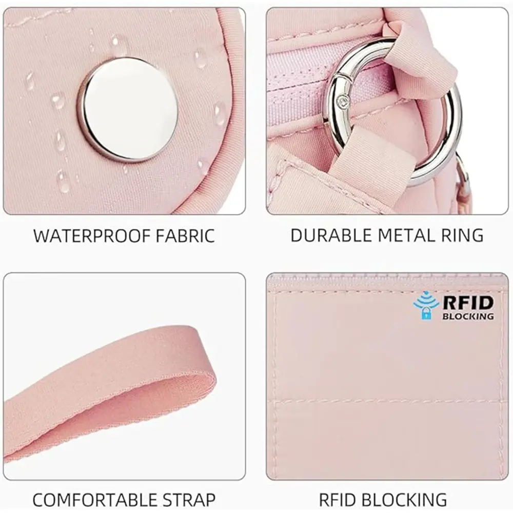 I got the pink and it looks nothing like the pink in the picture, also there’s no RFRID blocking like it says there is. The strap is so long and it’s awkward . I was so excited about this and it’s not what I expected.
