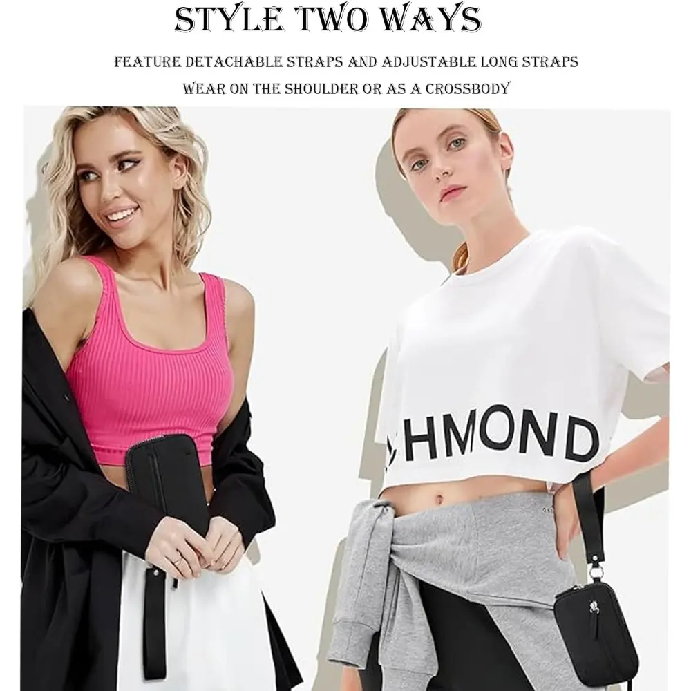 I love this so much. It’s the perfect on the go little wallet and it fits my iPhone 15 pro max with a Buffy case so good! I did replace the strap with my own so I love how it can be removed. I added a cute little keychain to it and it fits me perfectly!