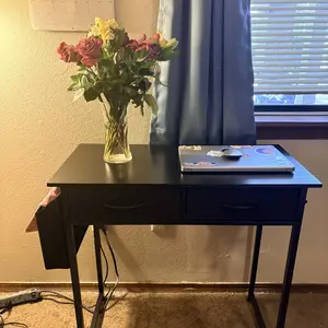 The desk is spacious, sturdy, and very stable thanks to its metal frame. It has enough space for your computer and books, plus a handy side pocket and headphone hook. Its modern design fits perfectly in an office, study, or bedroom. One of my best purchases.