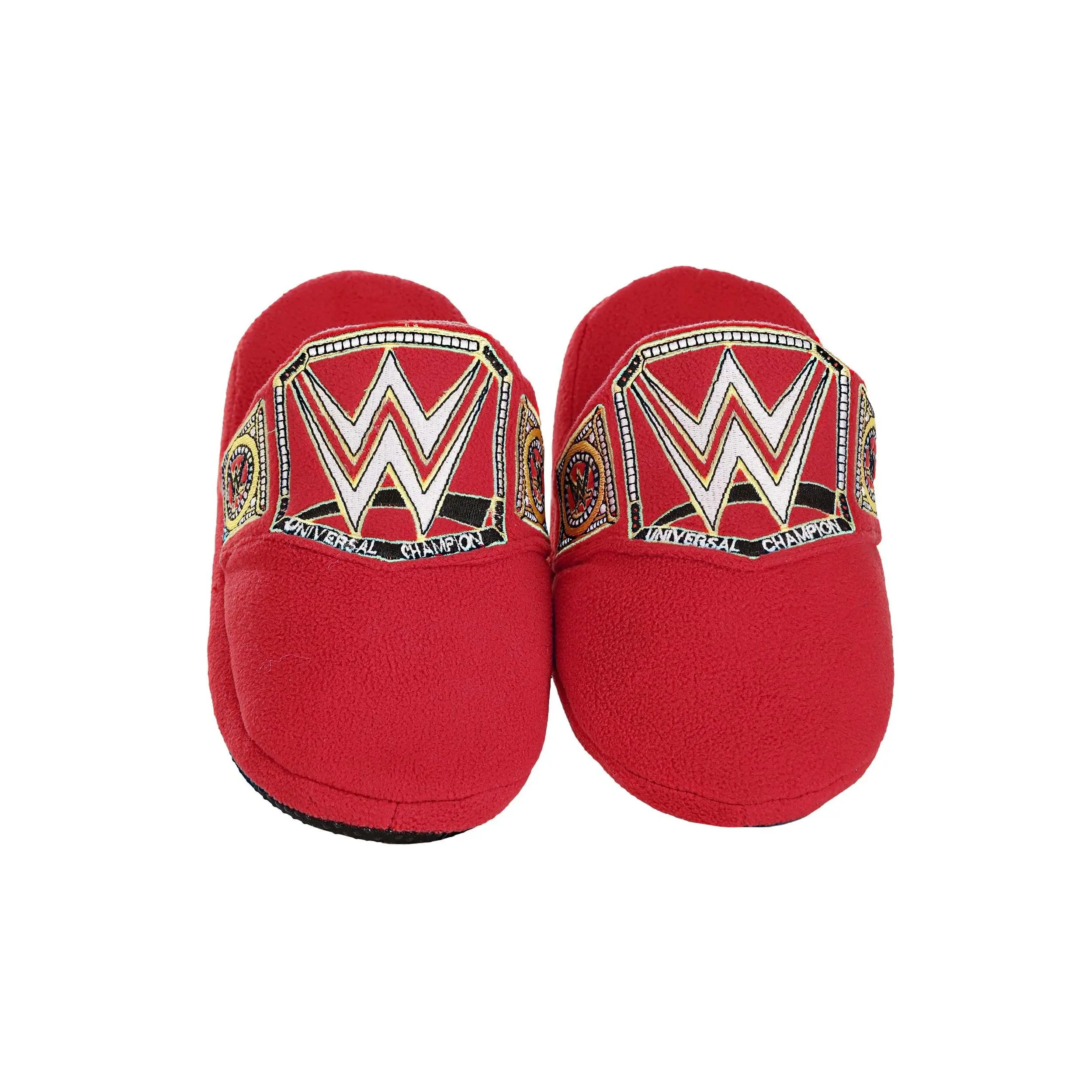 When you want to make your feet feel like champions, you need these cozy slippers! Crafted to look just like the WWE championship belt, these slippers combine the taste of victory with comfort. The bright red slippers have the WWE emblem on the top along with gold embroidery to help your feet feel like the next heavyweight champion of the world. The fleece material helps your feet stay nice and toasty, even during those chilly winter nights!