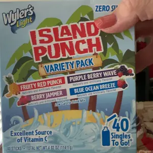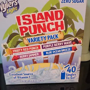 Variety Pack: 1 Box includes 40 single-serving packets with refreshing tropical fruit flavors in Wyler’s Island Punch.